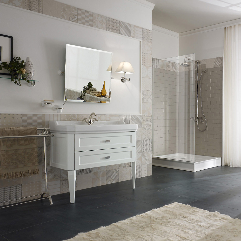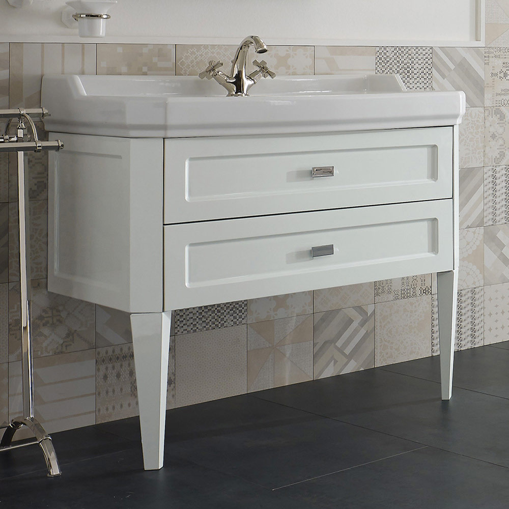 Bathroom Cabinet with Two Drawers and Ceramic Washbasin Made in Italy - Rome