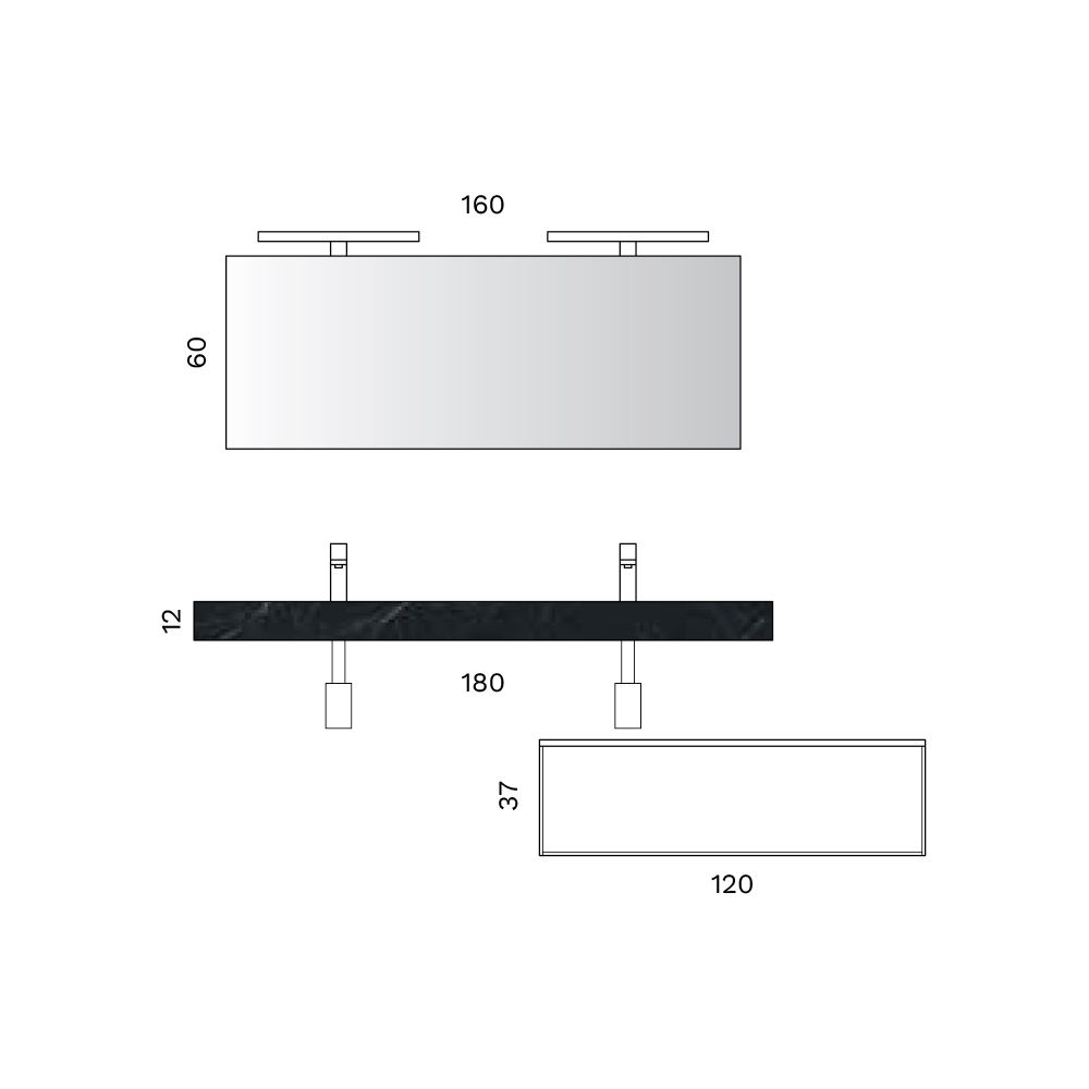 • Mirror: length 60 cm x depth 2.5 cm x height 160 cm