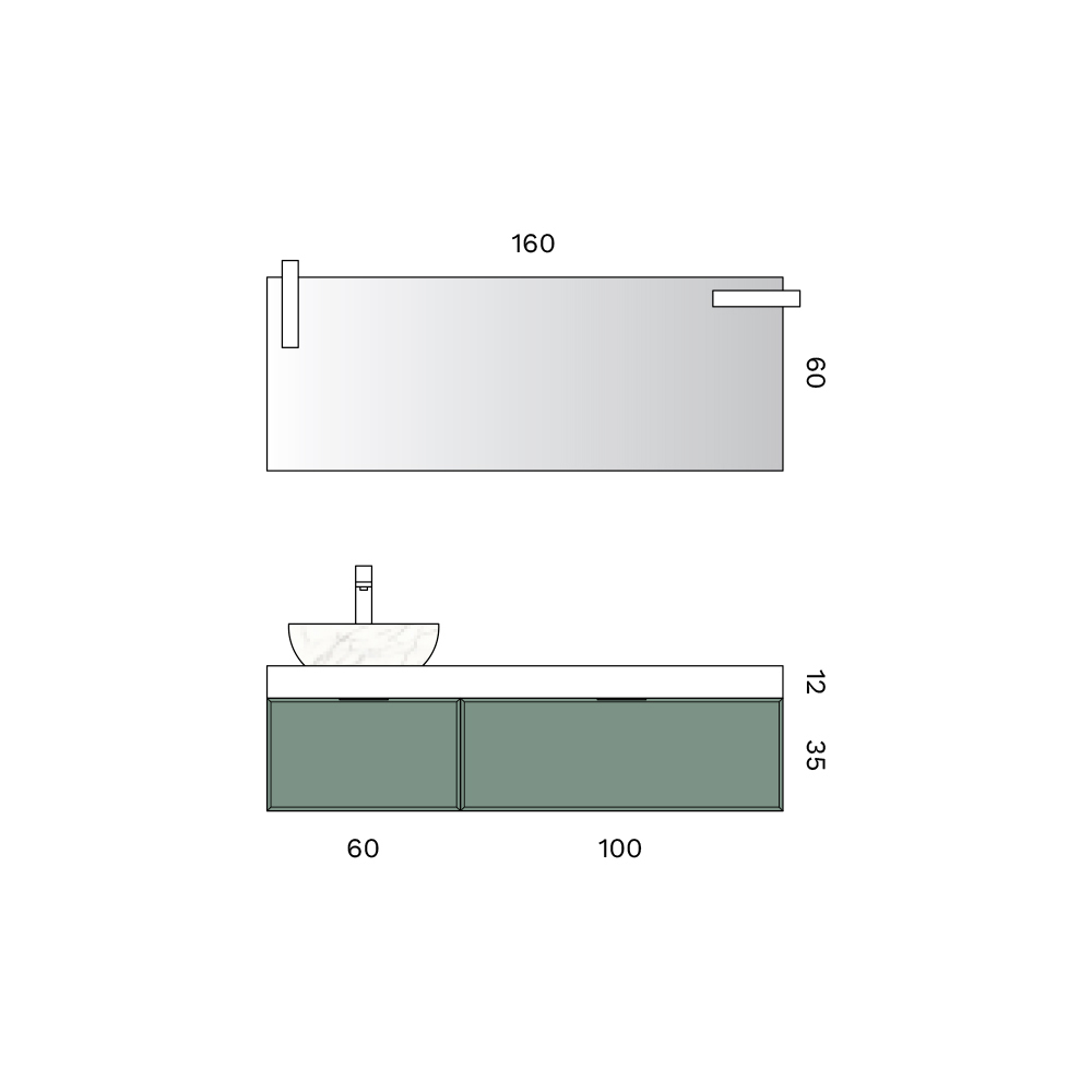 • Mirror: length 160 cm x height 60 cm