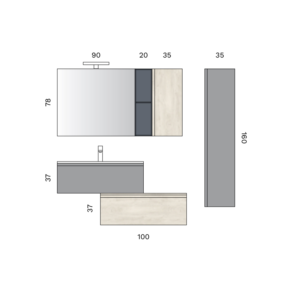 • Wall unit: length 35 cm x depth 18 cm x height 78 cm