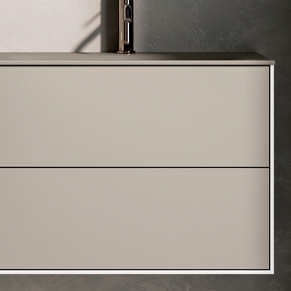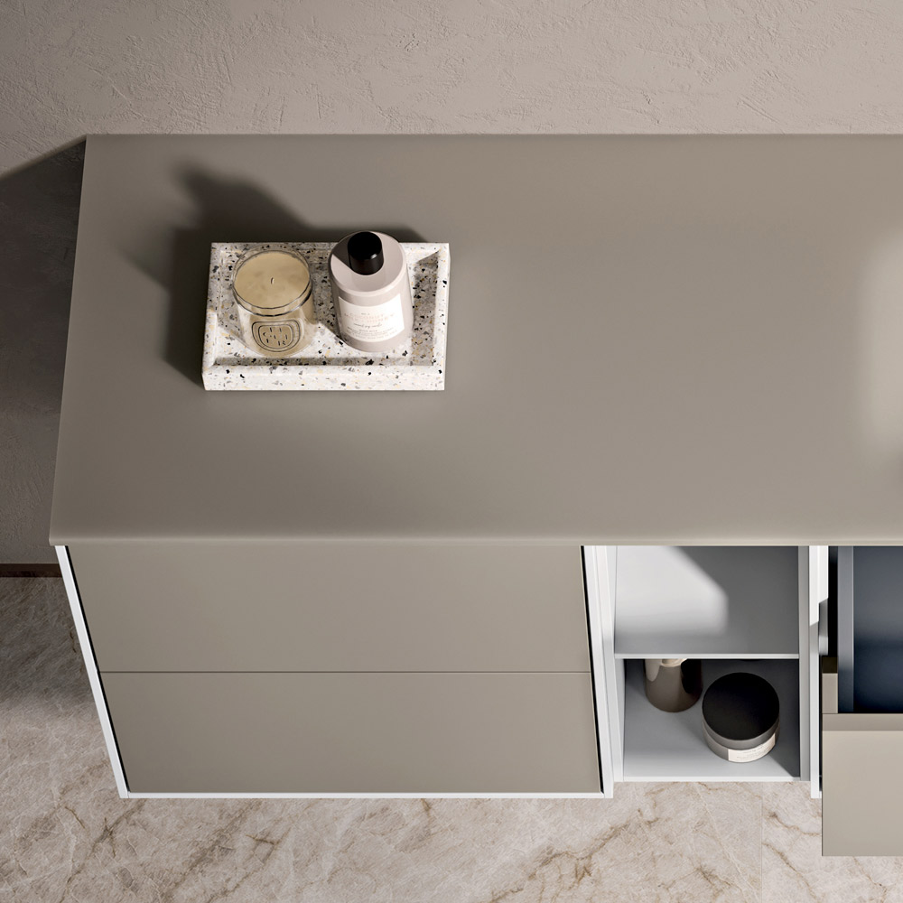 A perfect solution for those looking for a modern dove-grey suspended bathroom cabinet , capable of combining minimal aesthetics, refined materials and maximum everyday practicality.
