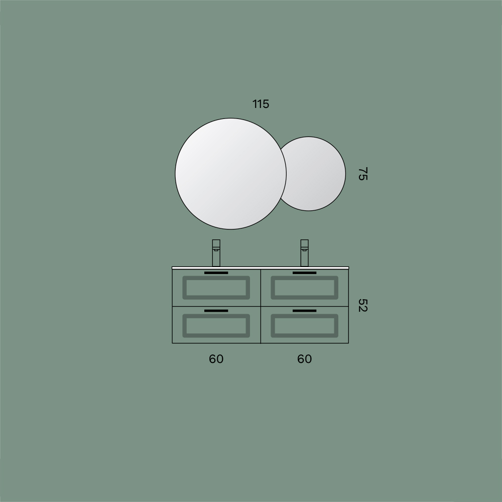 A bathroom composition with a refined and contemporary character, defined by the elegant matt sage finish , a sophisticated shade that gives personality and harmony to the room.