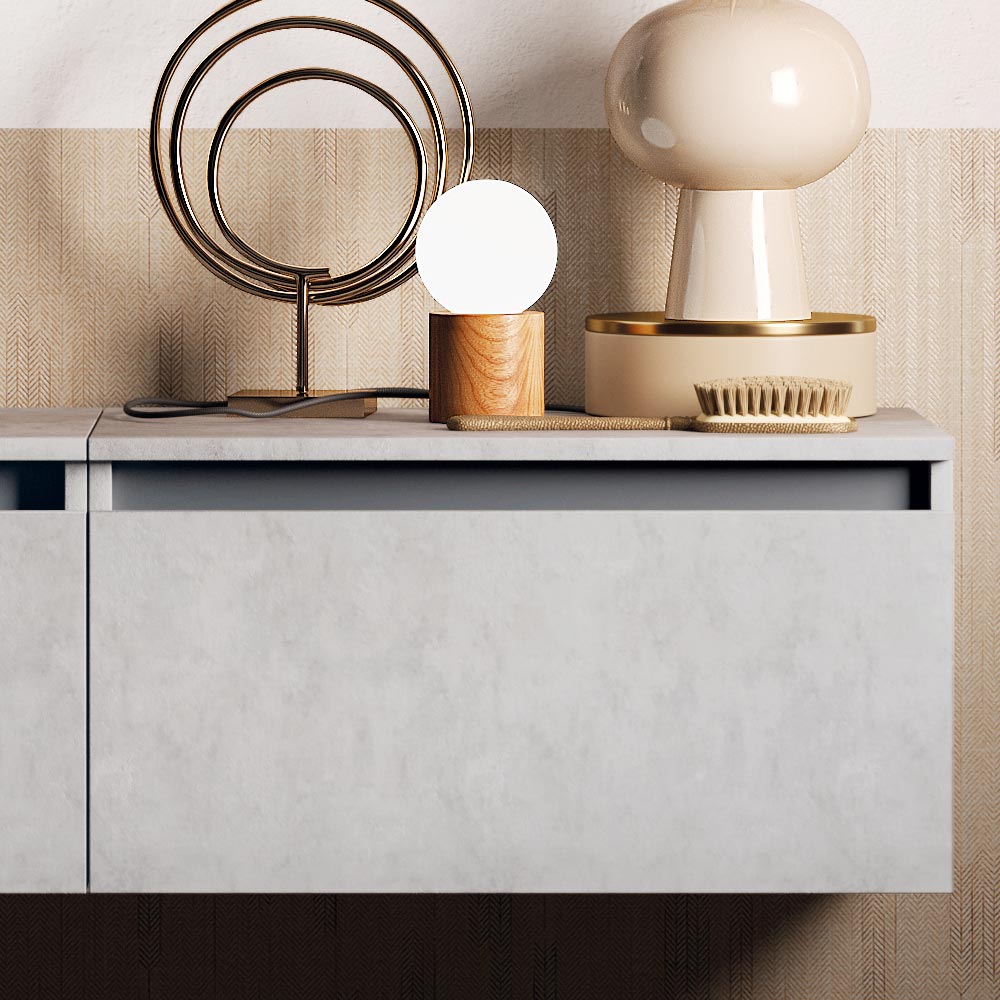 Composition that combines the soft shapes of the mirror with the solidity of the furniture, creating a product suspended between a modern and classic style. The choice of excellently crafted materials guarantees quality and functionality even with the passage of time.