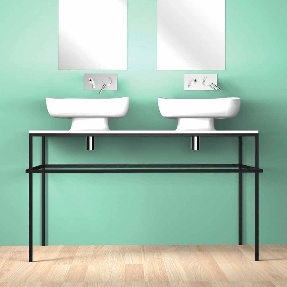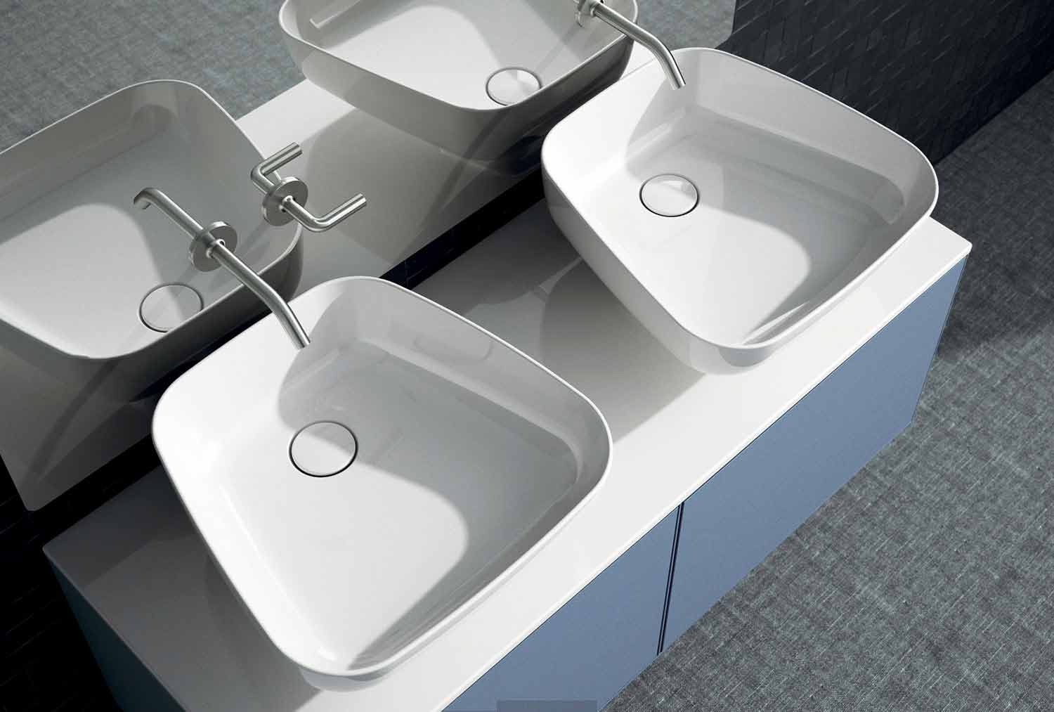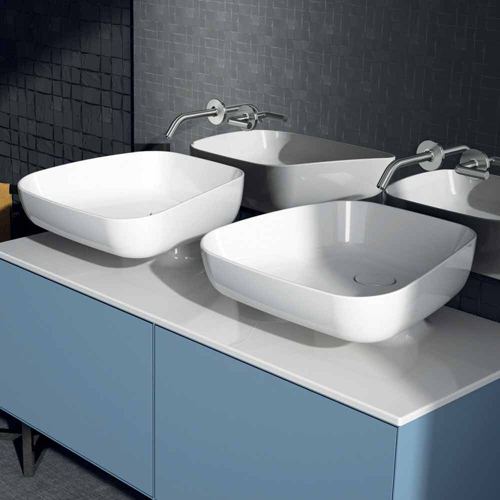 Reale is an extraordinary double countertop sink handmade in Italy in pottery and chracterized by a functional and ultramodern design; perfect to be integrated in any kind of bathroom style.