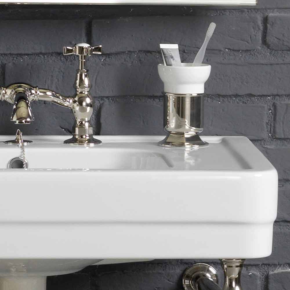 Linear is completed and enriched by the presence of a beautiful ceramic countertop soap holder with chromed details and a toothbrush holder in the same design.