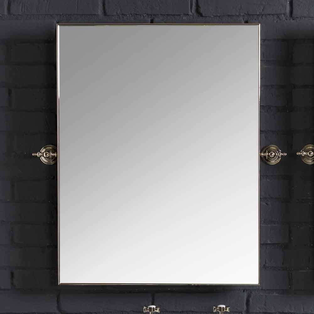 - 2 tilting rectangular mirrors with brass metal frame in polished nickel finish. Measurements: 76.5cm x 57.5cm.
