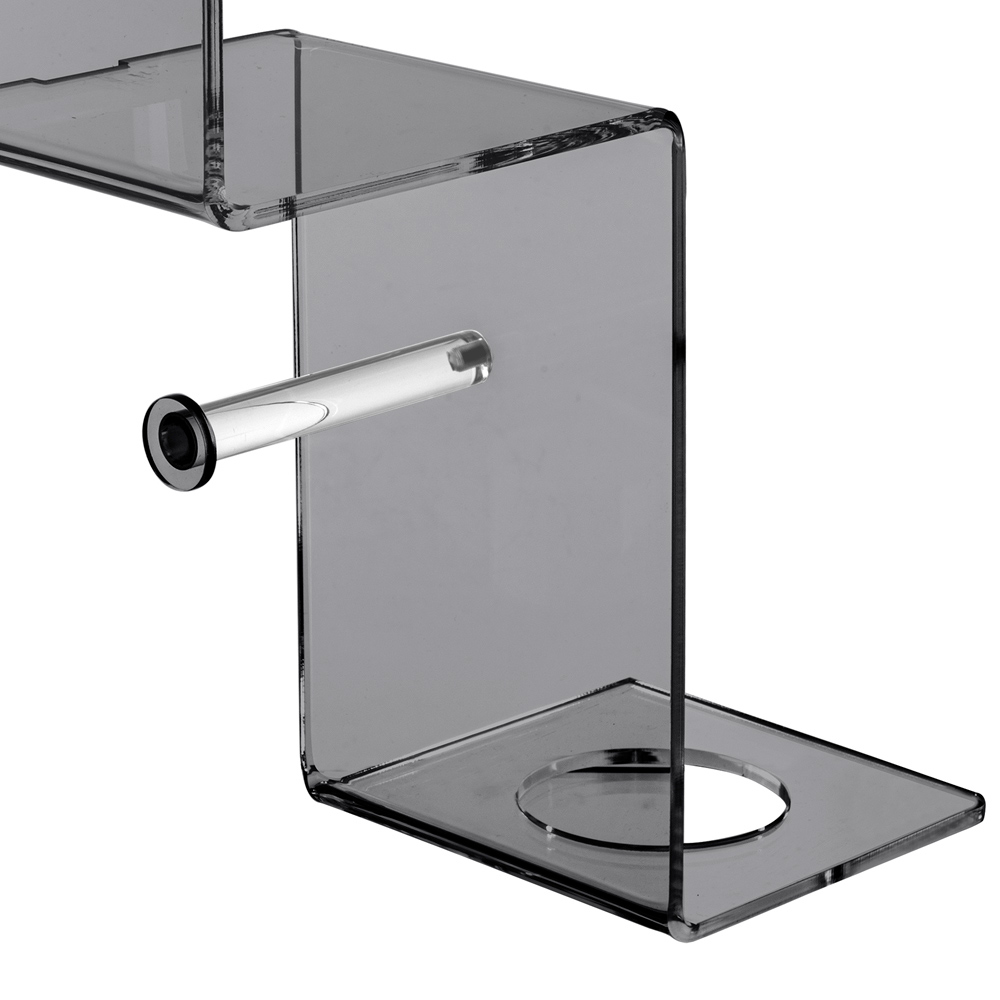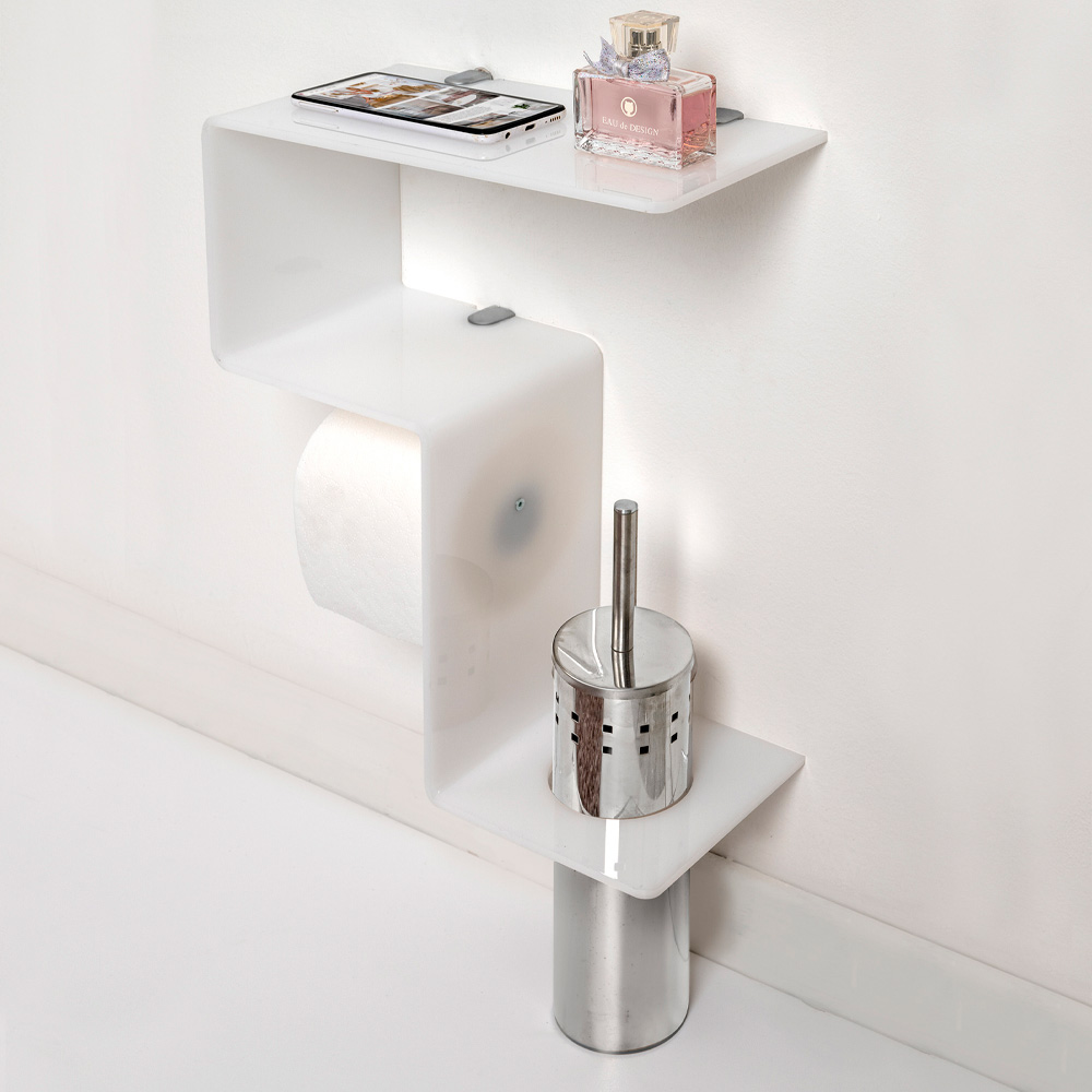The toilet paper holder embodies refined aesthetics and unparalleled functionality , all in a single piece of bathroom decor. This accessory is made entirely of the highest quality plexiglass, ensuring uncompromising resistance and durability. Its design, characterized by fluid and modern lines, makes this object not only a useful everyday tool, but also a design element capable of distinguishing your bathroom with a note of elegance and unique brightness. The virgin polymer finishes integrate perfectly into any context, giving brightness and brilliance that remain unchanged over time, keeping the bathroom bright and welcoming. Its practical and intelligent structure offers the convenience of having everything you need at hand, without sacrificing style.