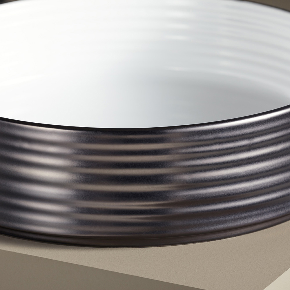 • Glossy white interior, matt gun metal black exterior