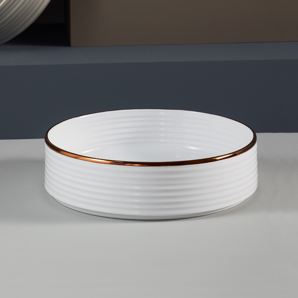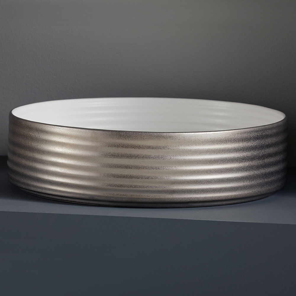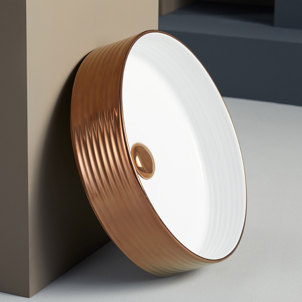 • Glossy white interior, matt bronze exterior