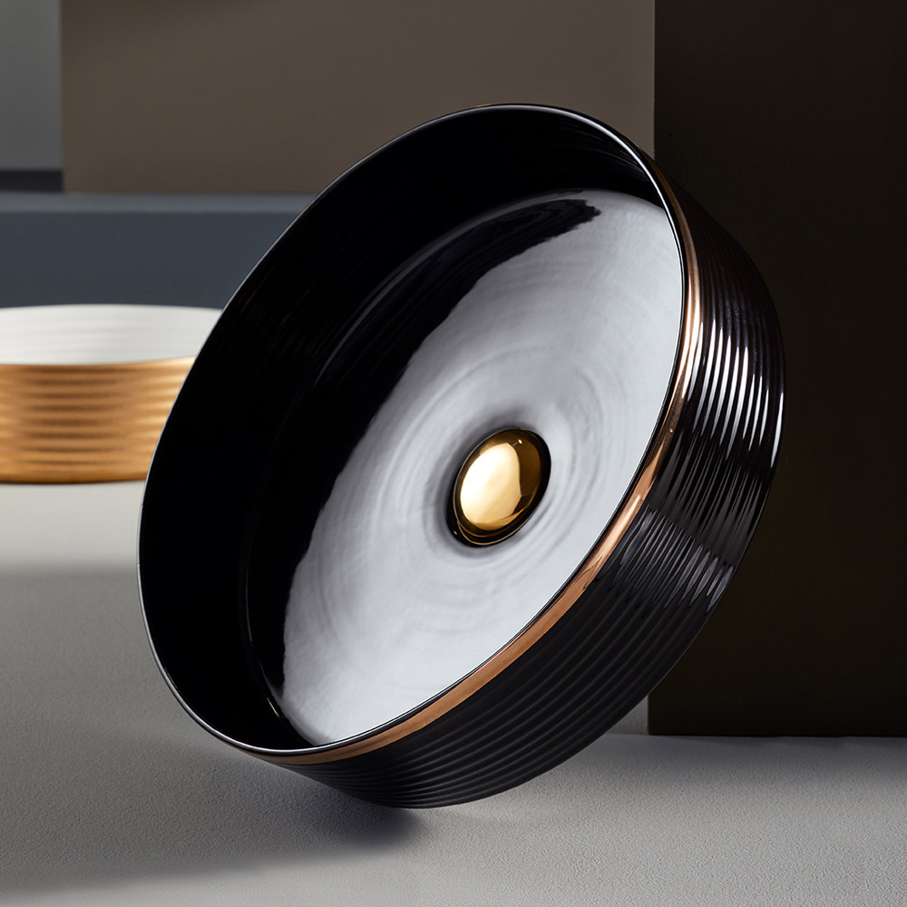 Countertop sink made of hand-turned porcelain stoneware, entirely Made in Italy.