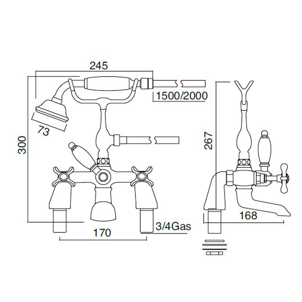 Bathtub Taps in Brass with Classic Luxury Style Hand Shower - Fioretta