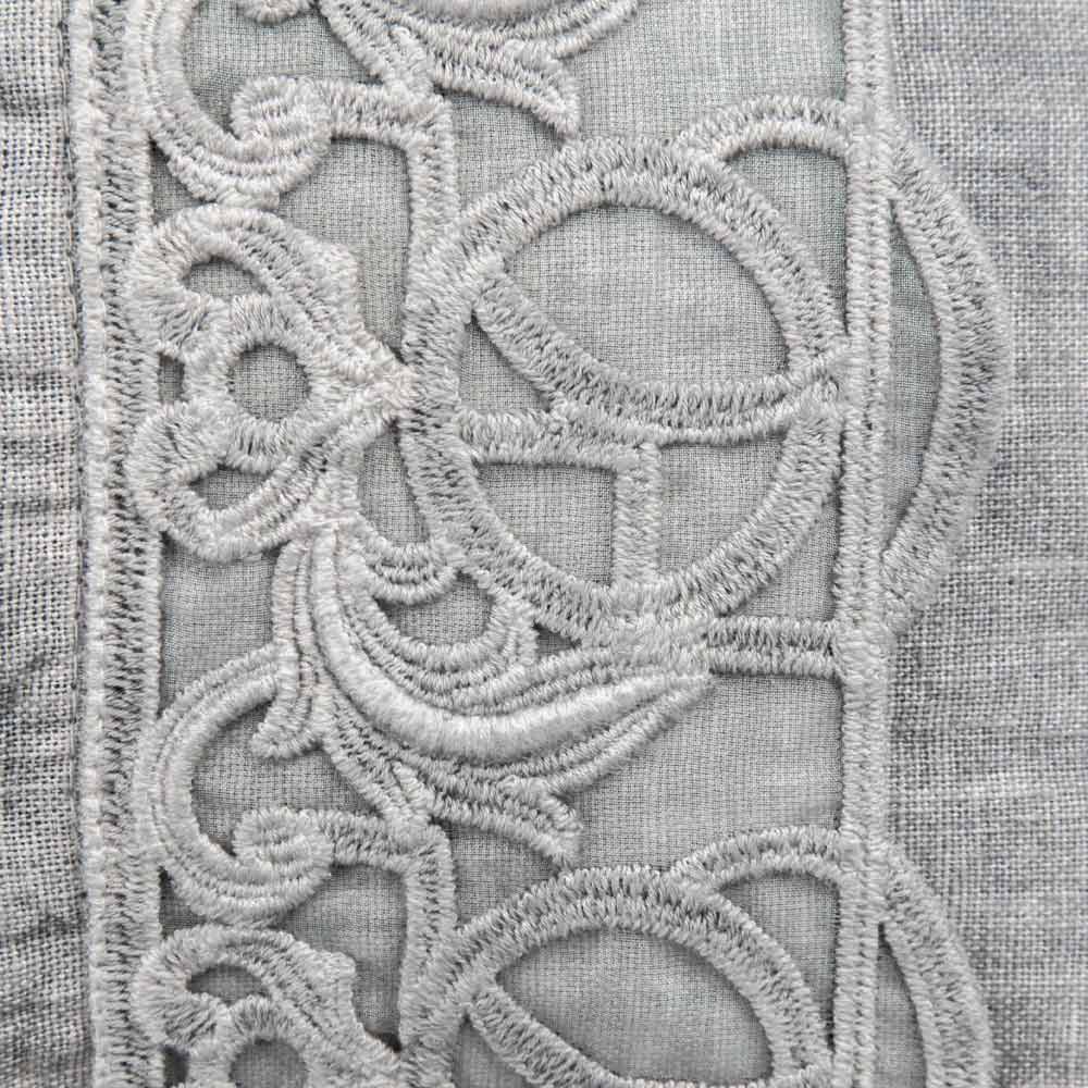 Pillowcase in gray linen with synergy lace, central buttons and piping, luxury made in Italy.
