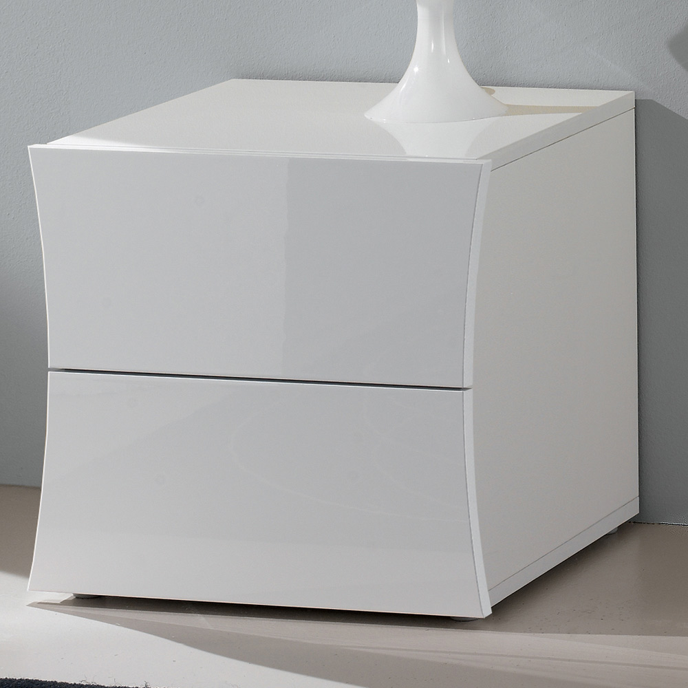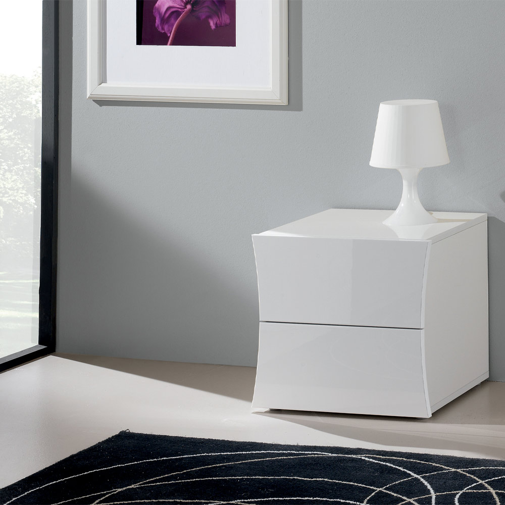 Bedside table with 2 drawers for the bedroom of white design, made in Italy.