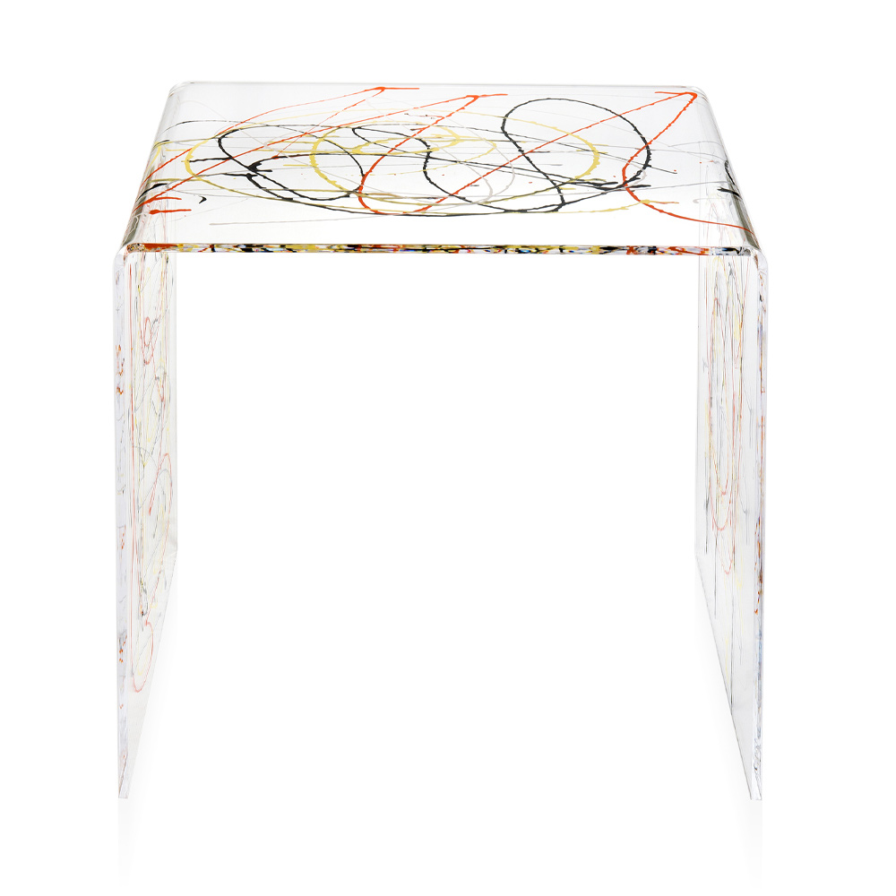 Bedside table in transparent plexiglass with colored paint, 2 sizes made in Italy.