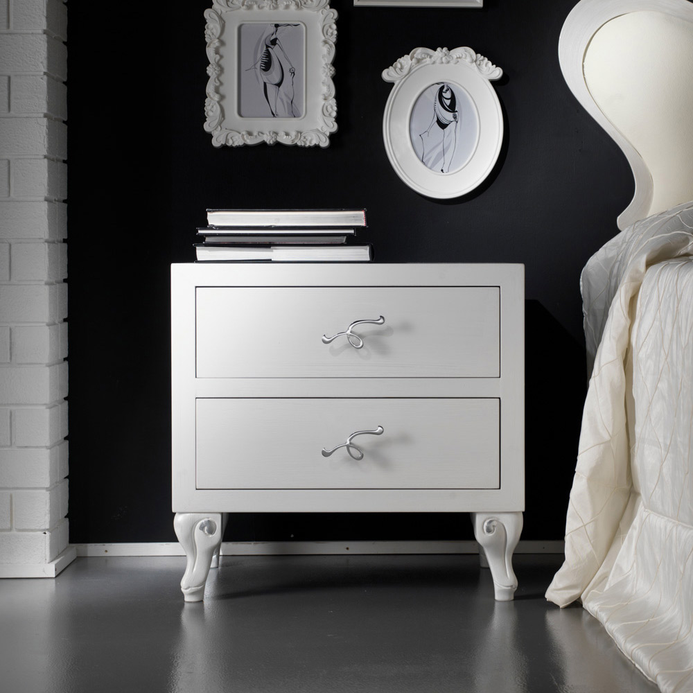 Bedside Table with 2 Drawers in Pearl White finish Made in Italy - Bacau