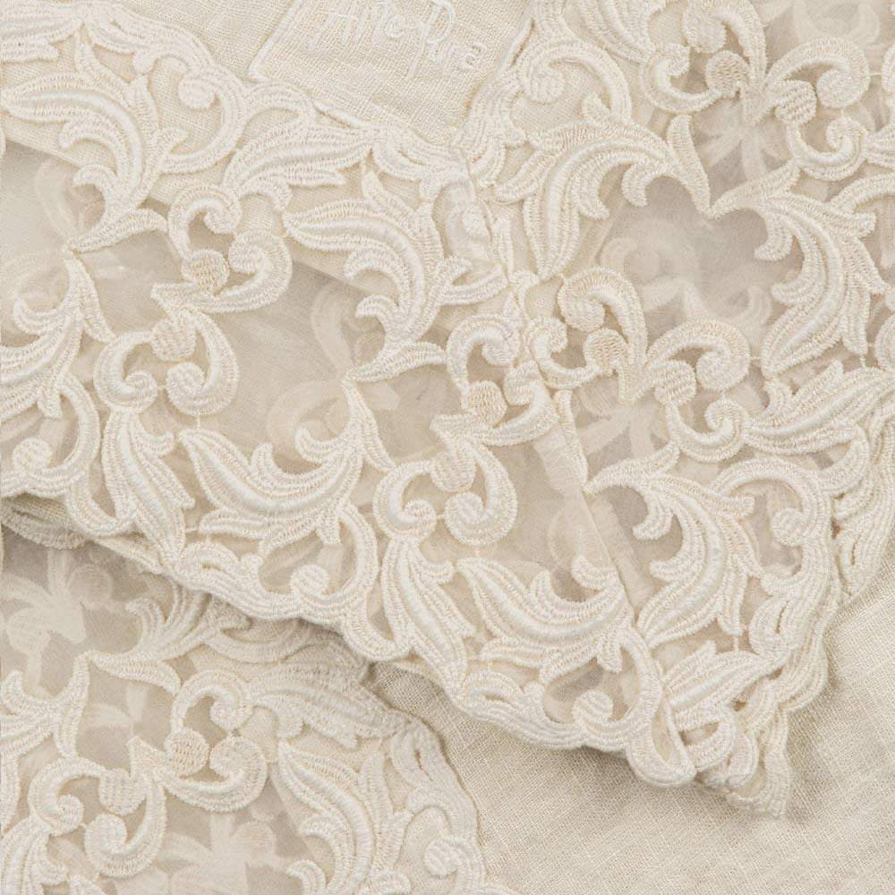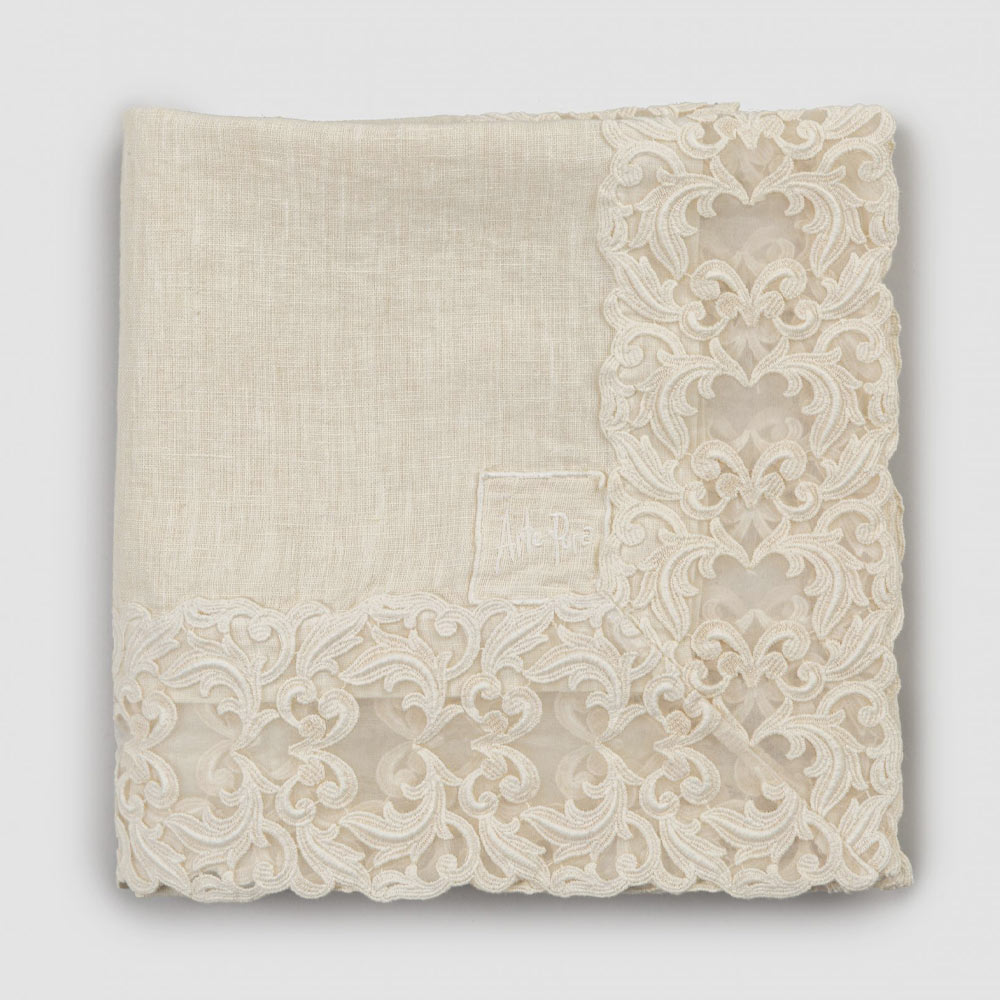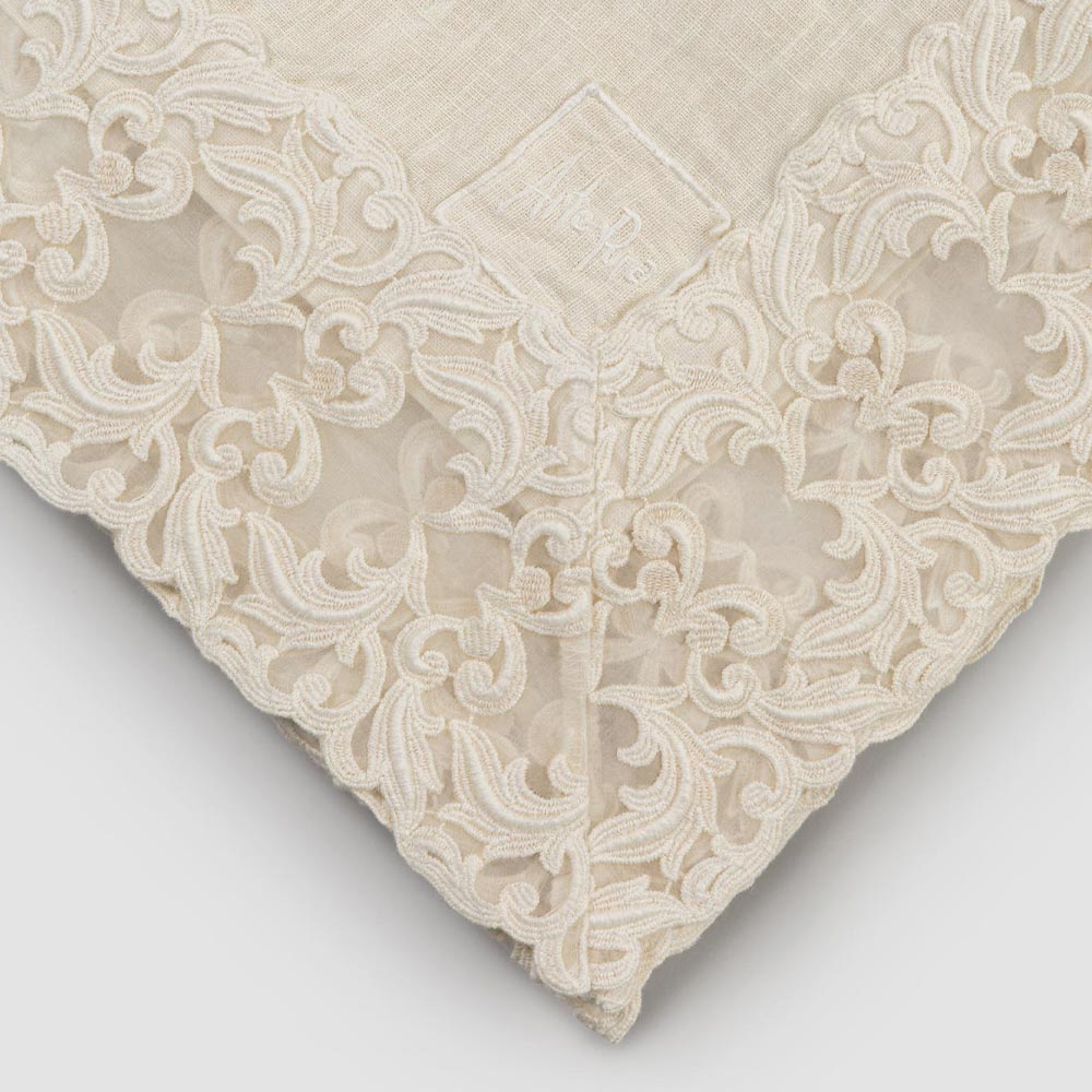 Beige Linen Square Tablecloth with Handcrafted Luxury Farnese Lace - Kippel