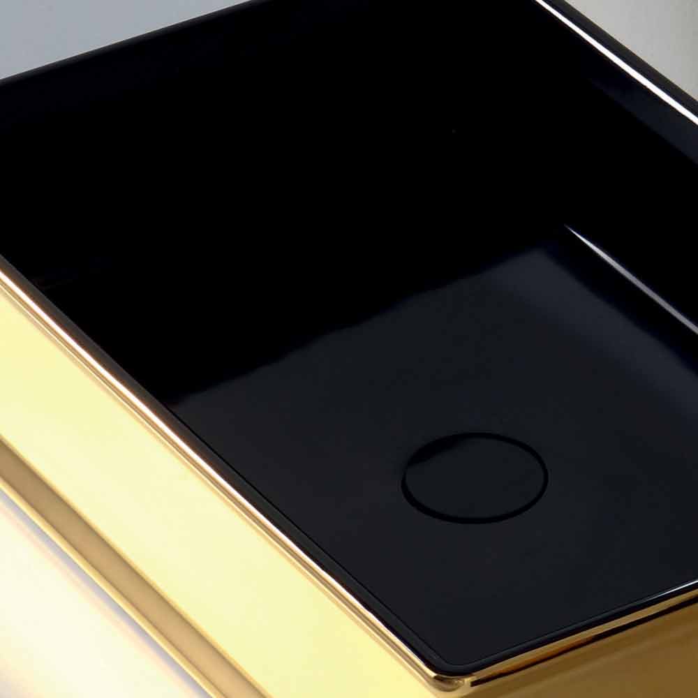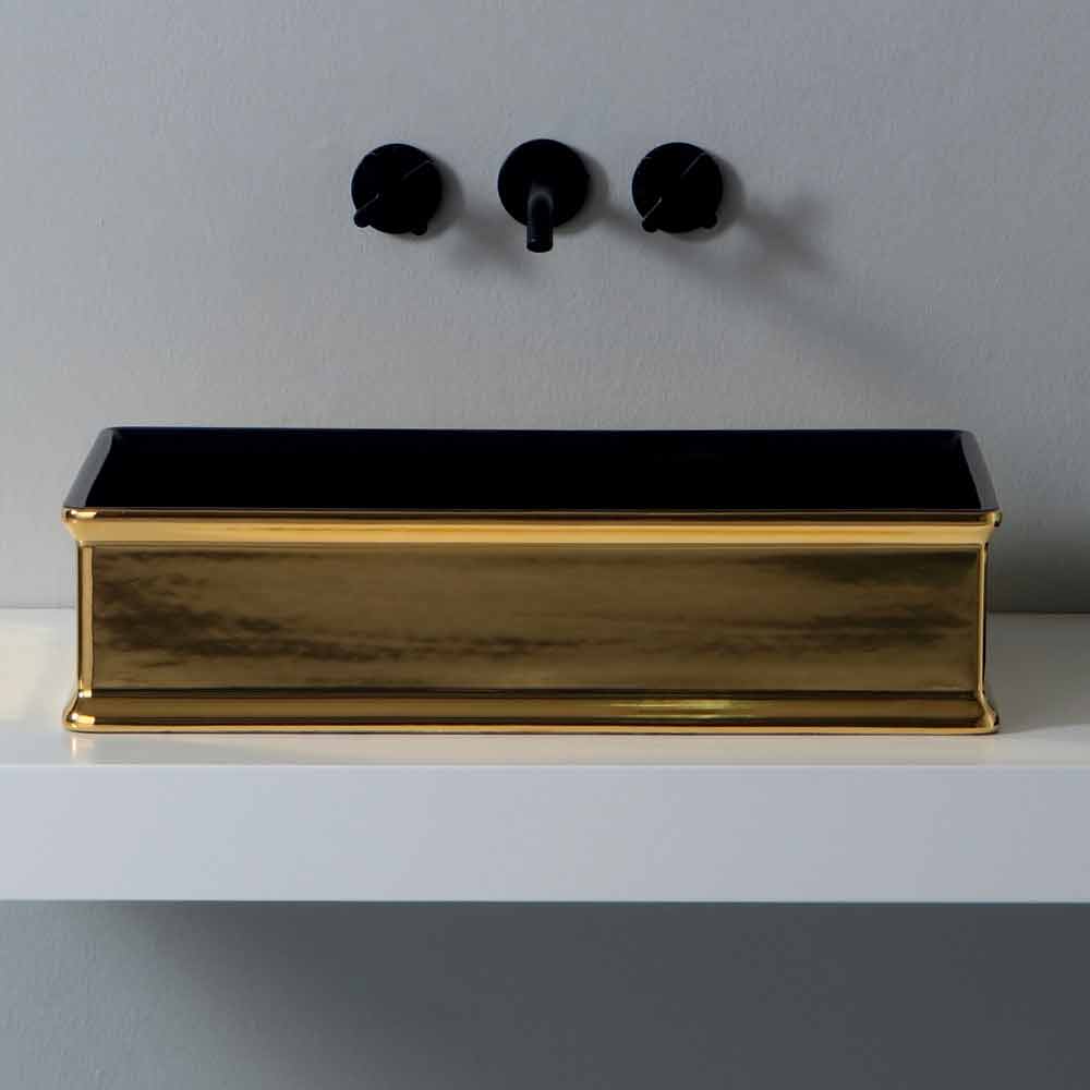 Debora is the countertop washbasin made in Italy by hand by master craftsmen; characterized by a ceramic structure with a two-tone finish: gold and black.