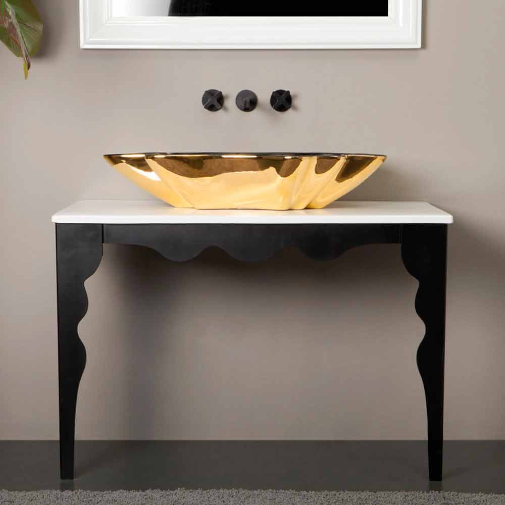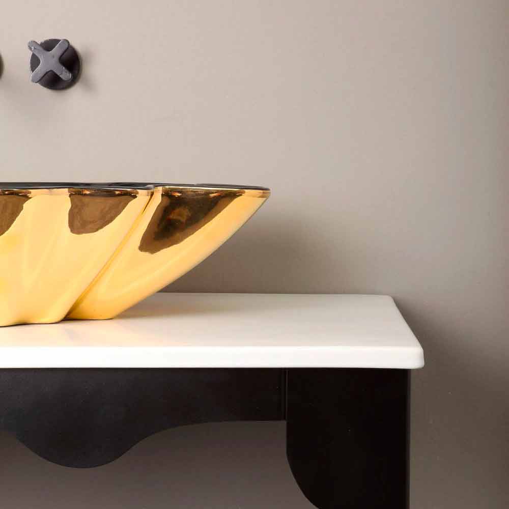 Black and gold ceramic countertop washbasin made in Italy Rayan