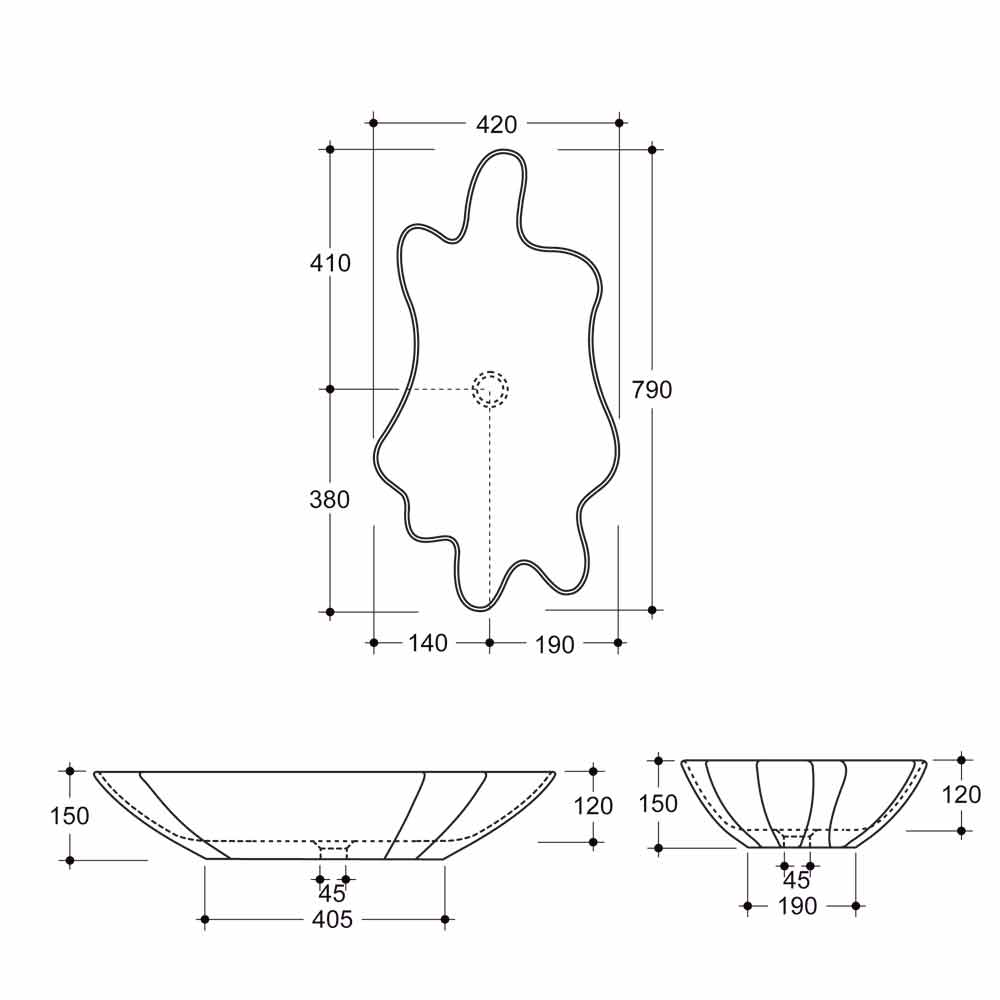 Washbasin that recalls the sea through its pearl-shaped drain thus creating the illusion that it is an oyster.