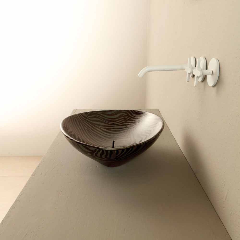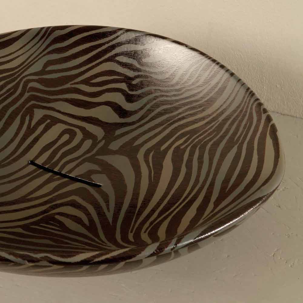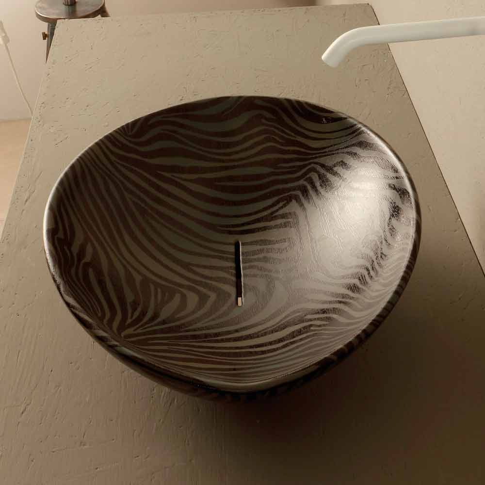 Design countertop washbasin in black zebra ceramic made Italy Animals