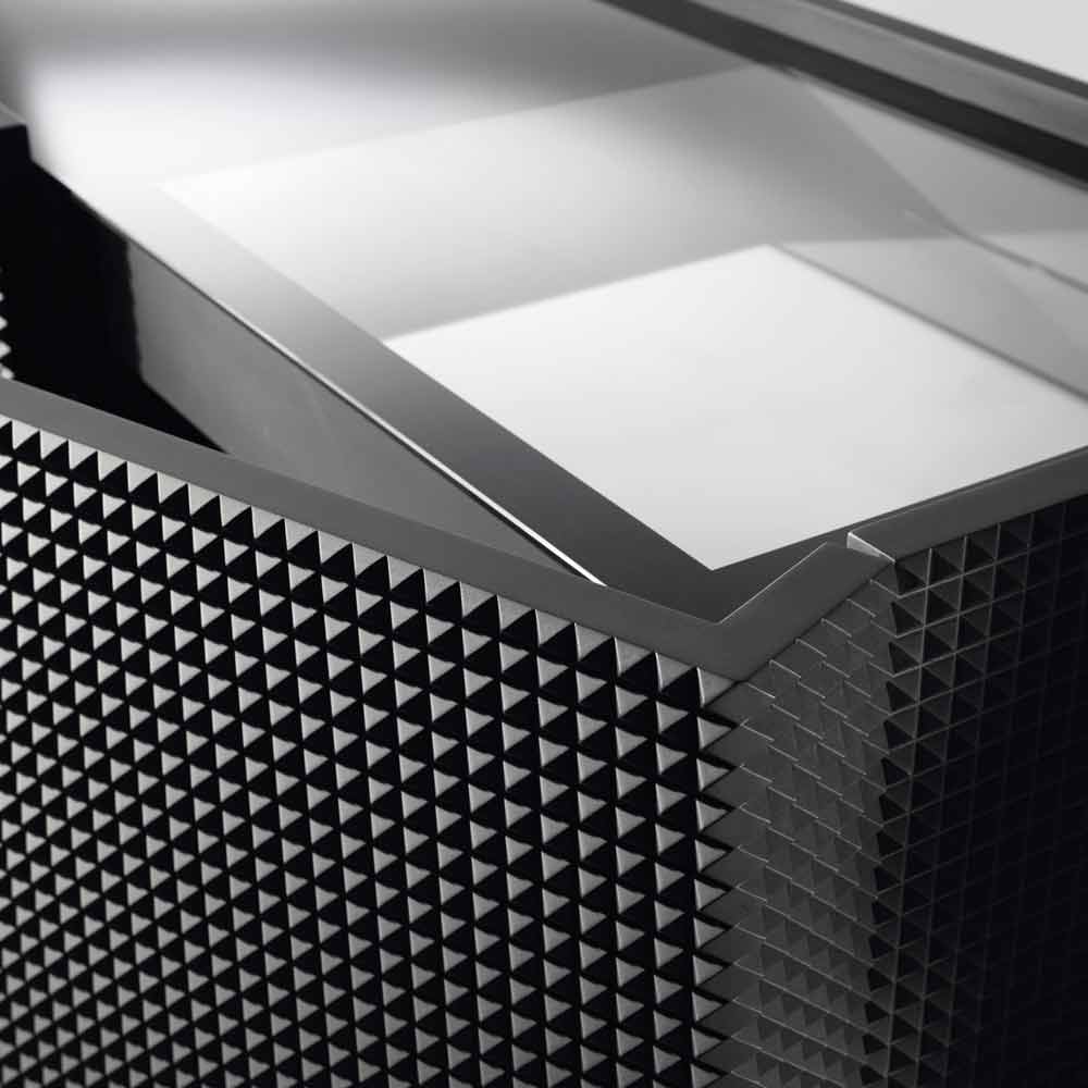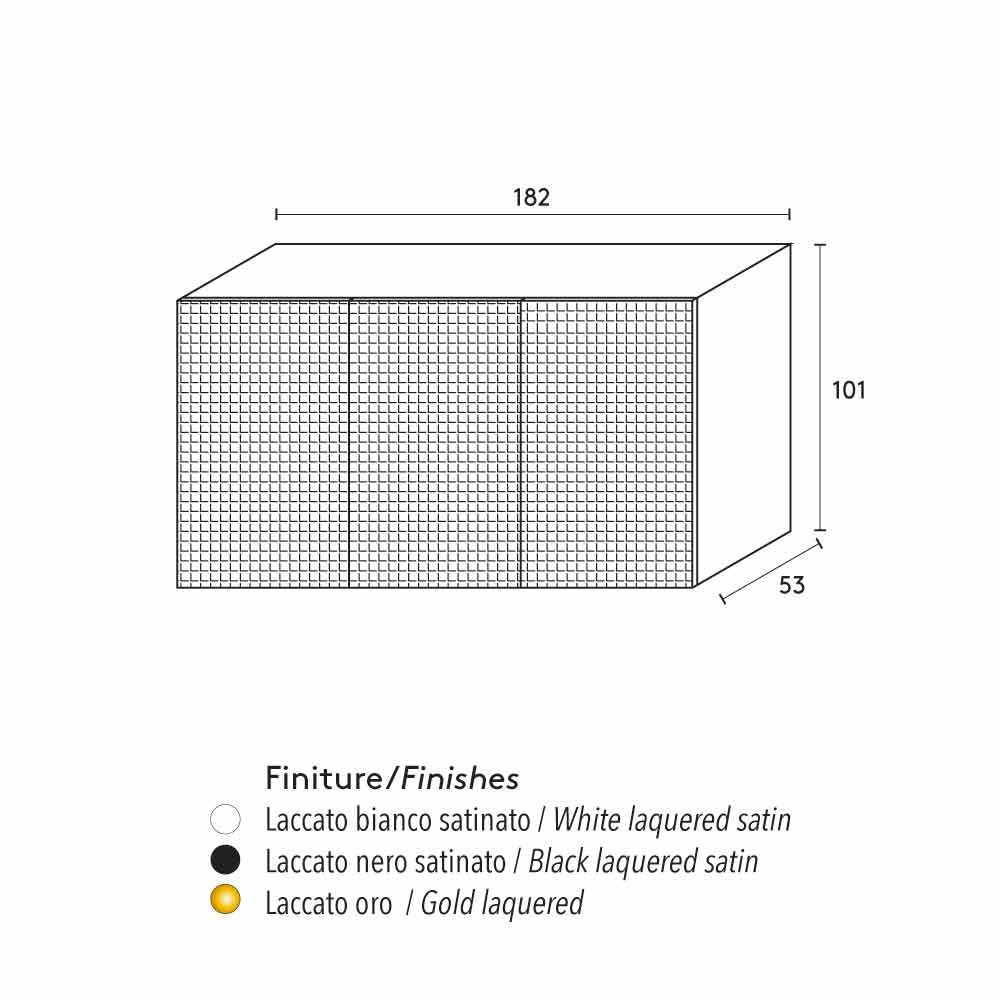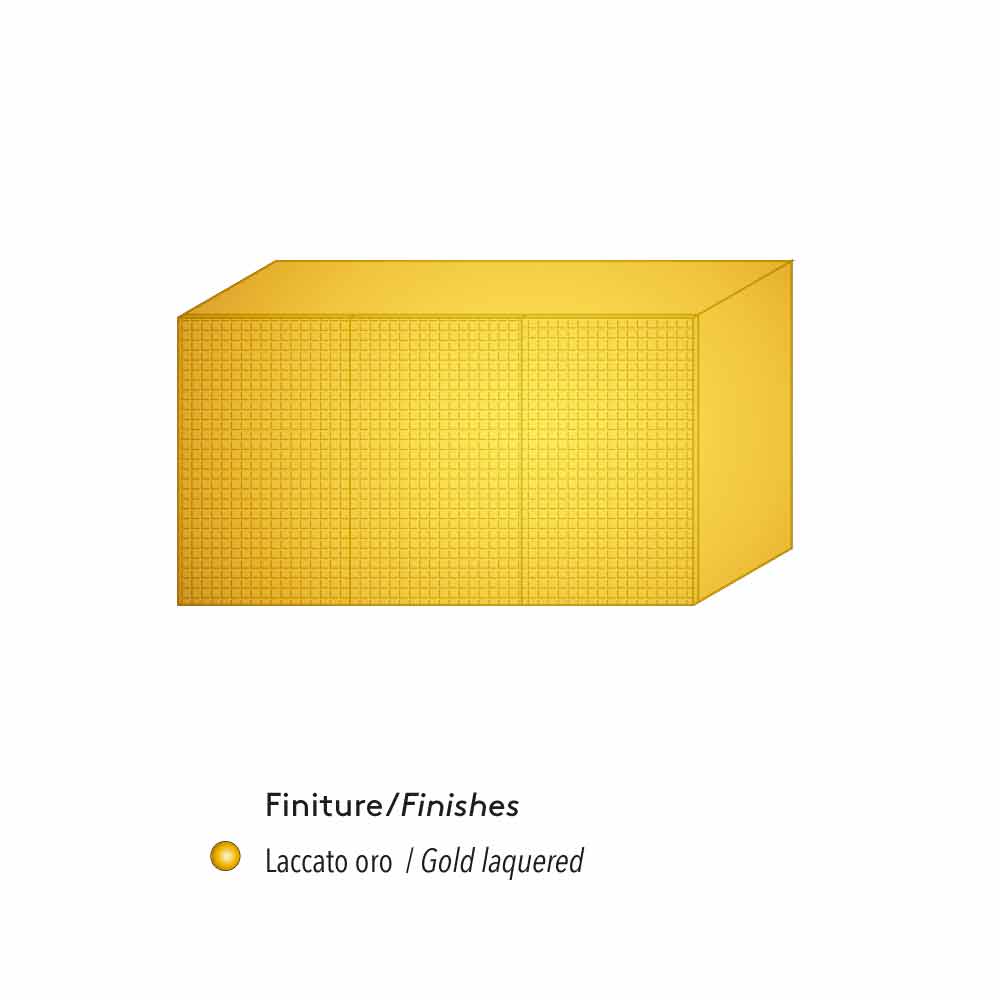 It is available with lacquered satin white, lacquered satin black or lacquered gold finish.
