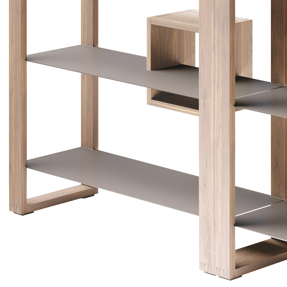Other open elements can be added to the standard composition of the bookcase.