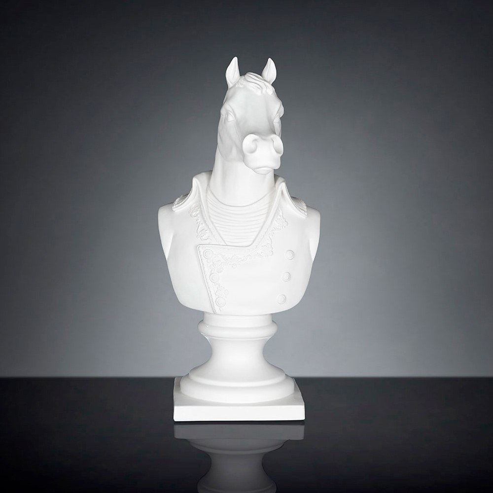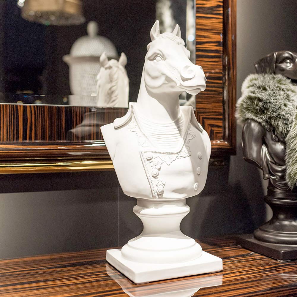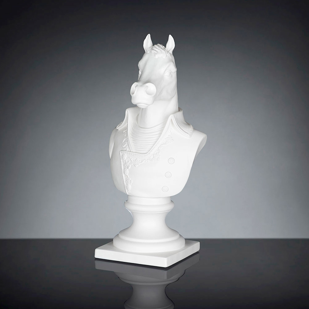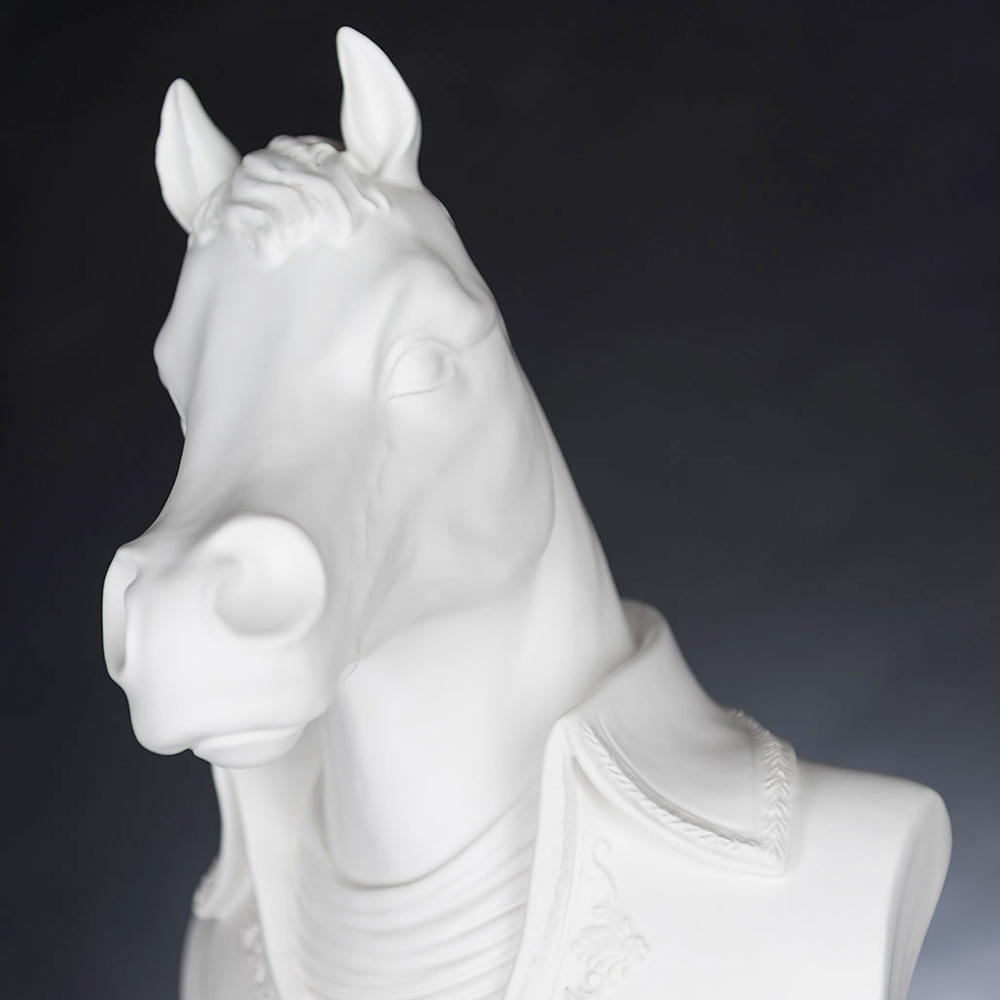 Decorative ceramic sculpture handcrafted by Italian artisans depicting Marengo, Napoleon Bonaparte's famous war horse.