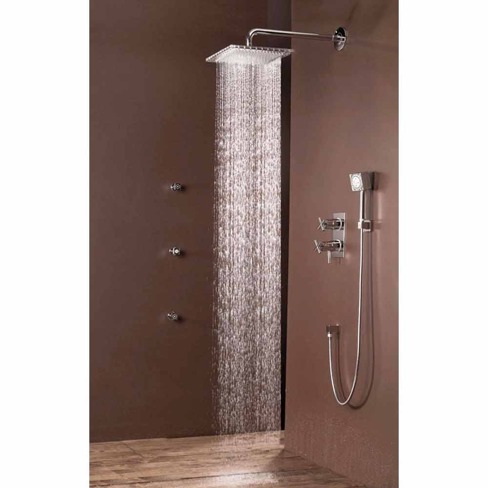Shower head Dream Cube 300 x 300 mm, self-cleaning, with brass shower arm 90°, Ø 28 x 500, with 1/2 M showerhead.