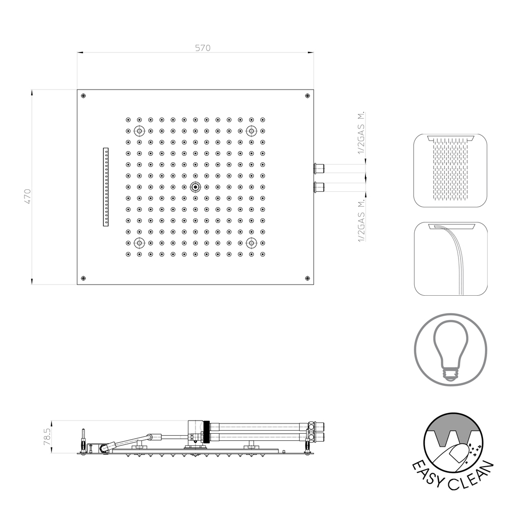 - Dream/2 shower head with two functions (rainfall and comb waterfall) with RGB LED lights