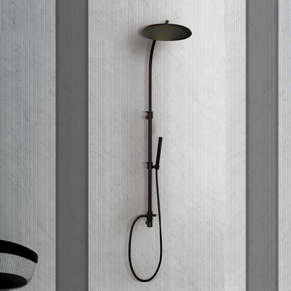 Modern brass shower column with round shower head, Made in Italy quality product.