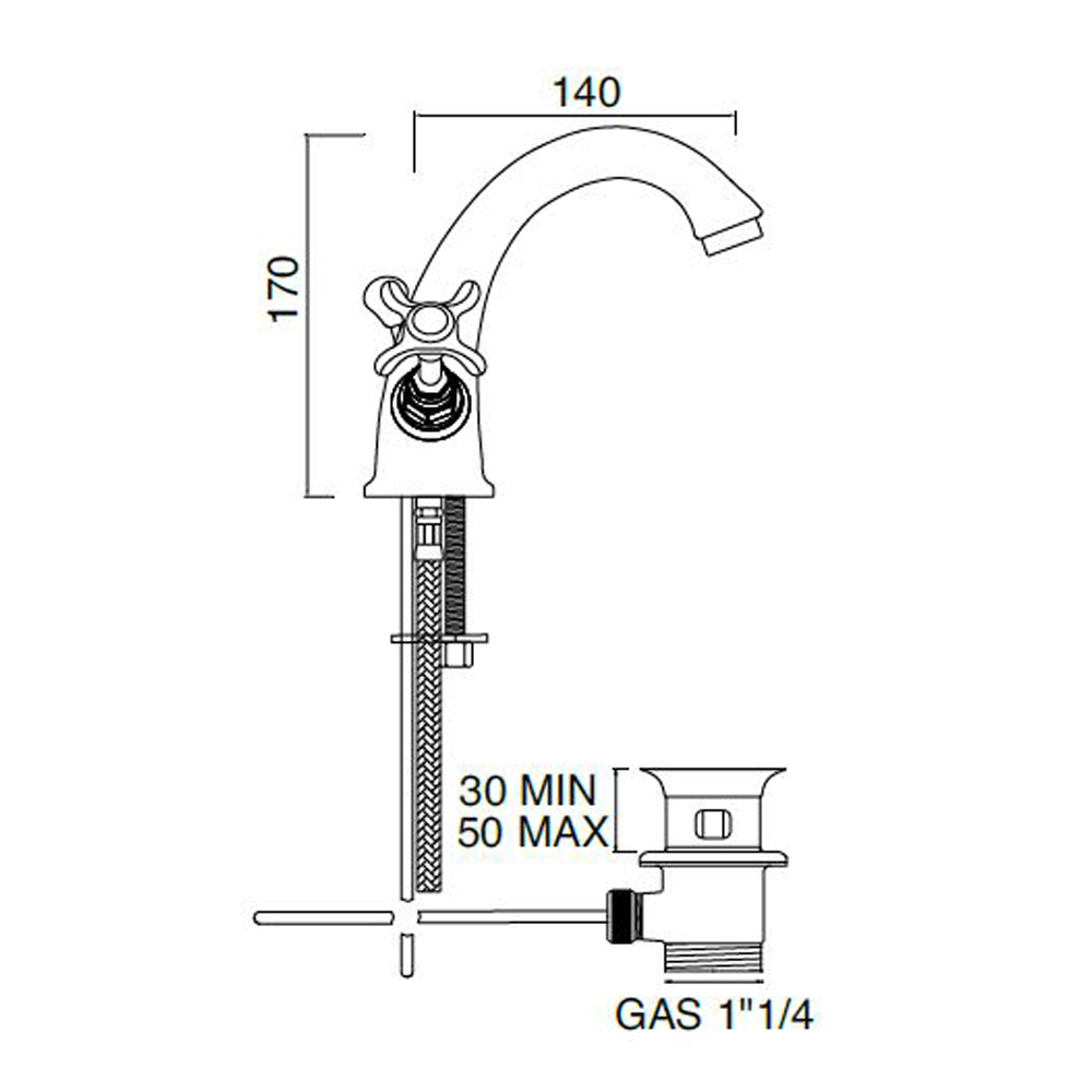 This refined sink faucet  single-hole with drain è entirely handcrafted by expert artisans in the field inheavy brass, cast in molds that respect the craft systems of the past and protected with a thick layer of finish available in various colors.