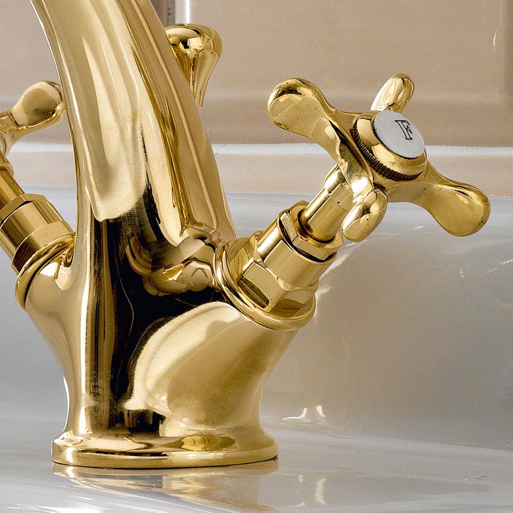 Classic-style single-hole basin faucet made of handcrafted brass made in Italy.