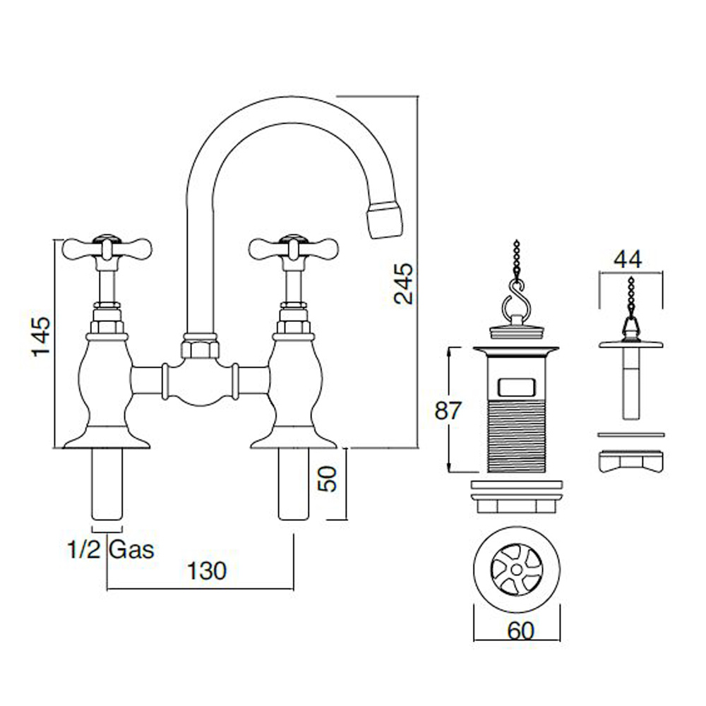 This exquisiteminimal bridge unit for washbasin with cap and chain è entirely handcrafted by expert artisans in the field inheavy brass, cast in molds that respect the craft systems of the past and protected with a thick layer of finish available in various colors.