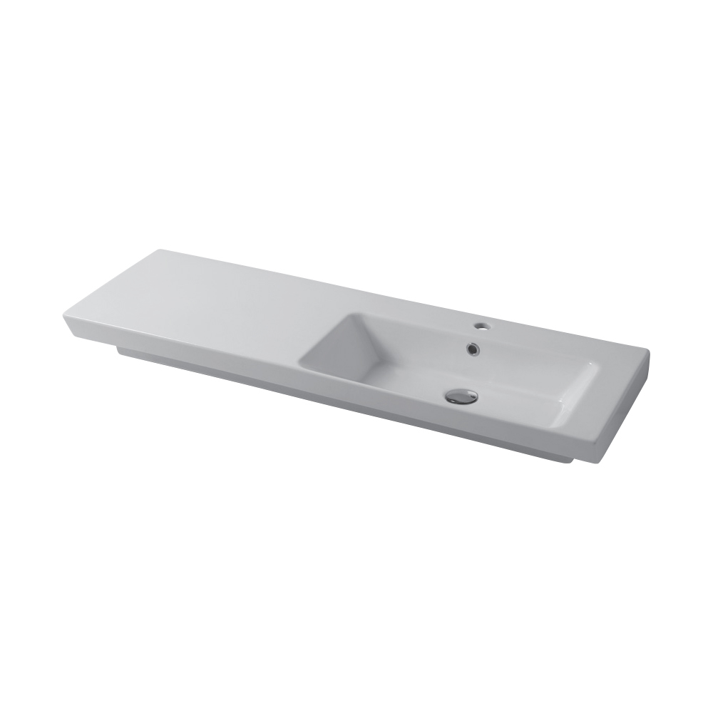 inclined front cut , which gives elegance and momentum. A series of important washbasins, also thanks to the lateral support surfaces and the variety of dimensions, an ideal response to the different needs of space and functionality.