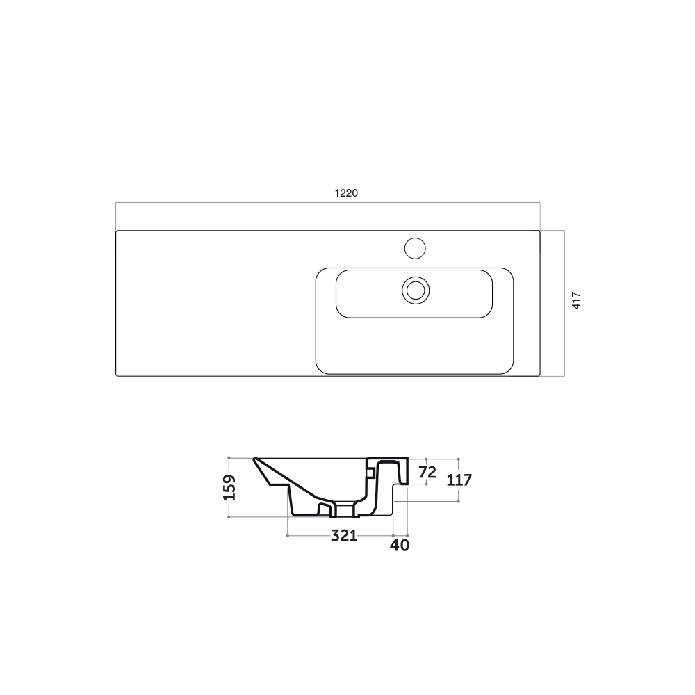 ceramic glazed and fired at 1200°, allows you to use this sink without the fear of ruining the surface. It is in fact a material