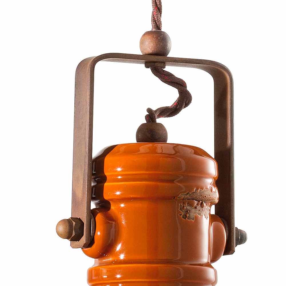 The peculiarity of this lamp lies in the craftsmanship of the ceramic diffuser. The ceramic, in fact, is decorated in such a way as if time had marked its path. The reproduction of the erosion of time combined with the shiny surfaces give that extra value to this suspension. This time-worn effect gives Cameron a sophisticated vintage-industrial style. The metal structure amplifies even more the antique effect.