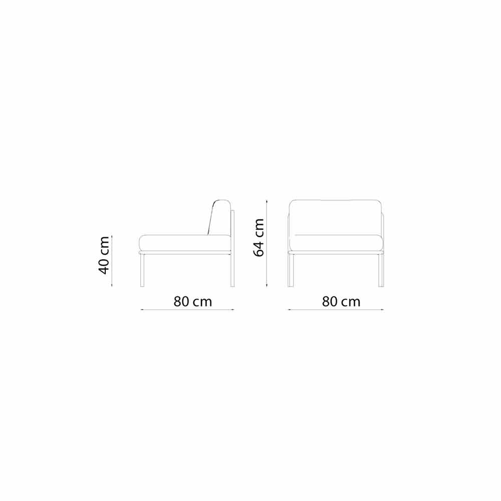 Modular central outdoor armchair in powder-coated galvanized iron and Made in Italy design fabric.