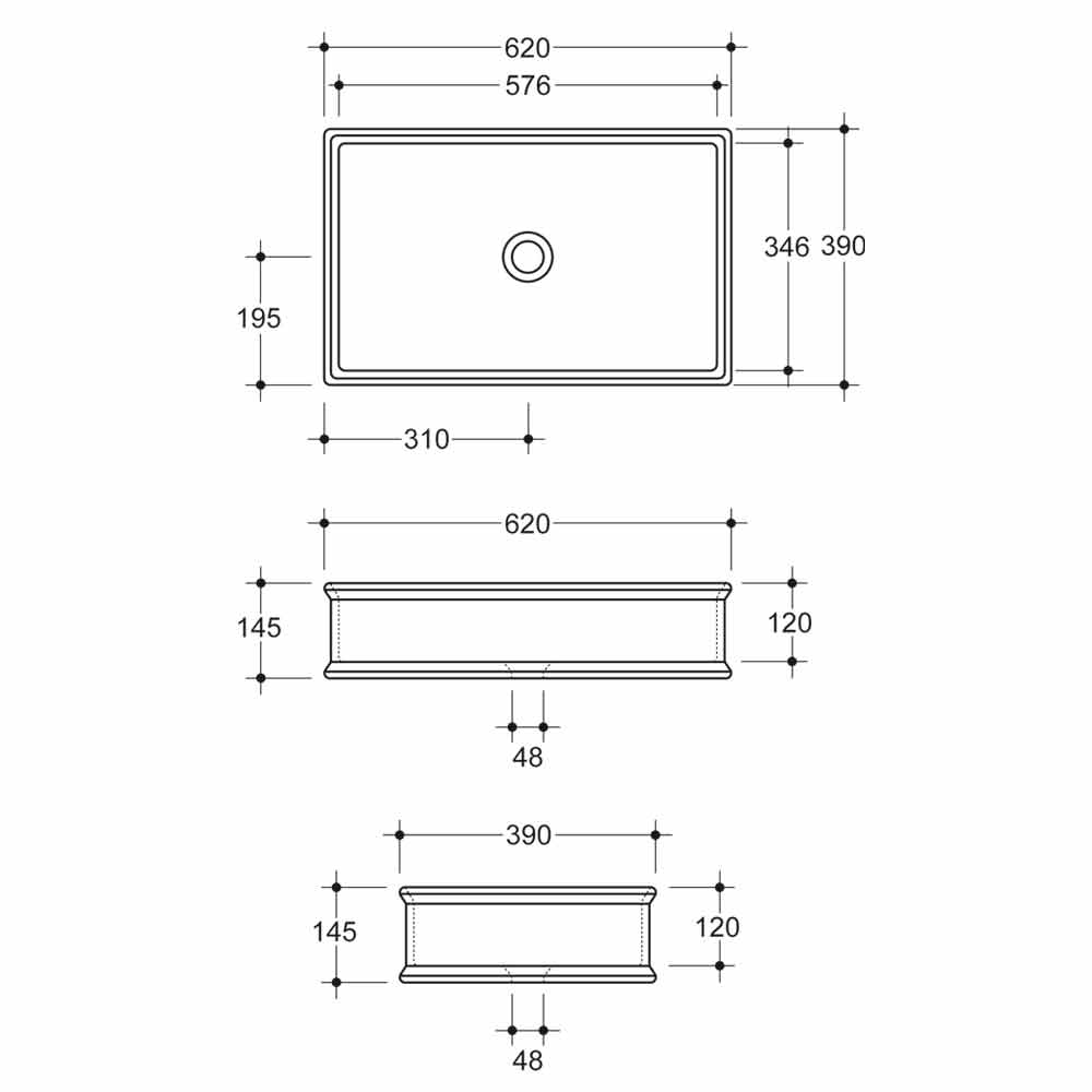 Washbasin with a discreet neoclassical flavor, an interpretation purified of all the sinuous and troubled shapes of other washbasins.