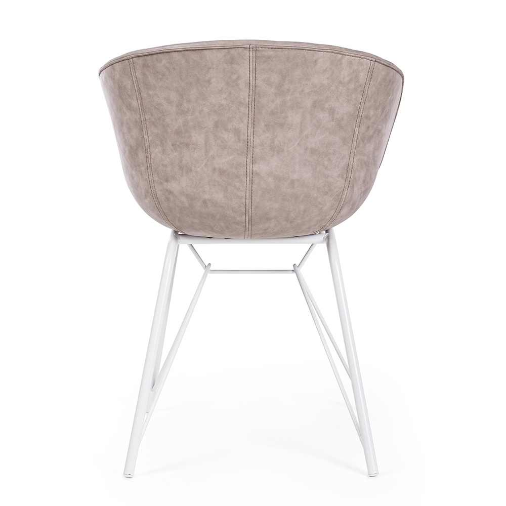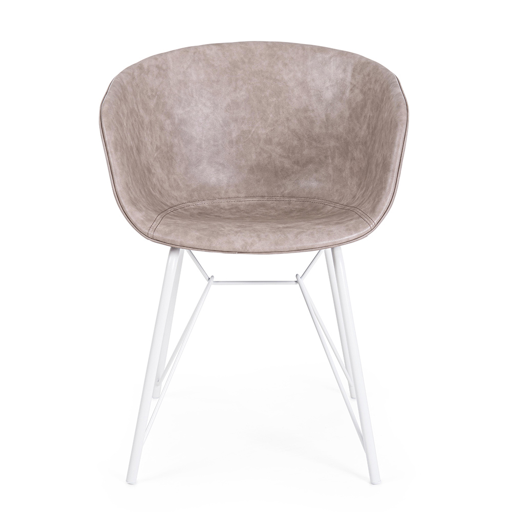 Chair Armchair in White or Black Steel and Vintage Ecoleather - Gongo