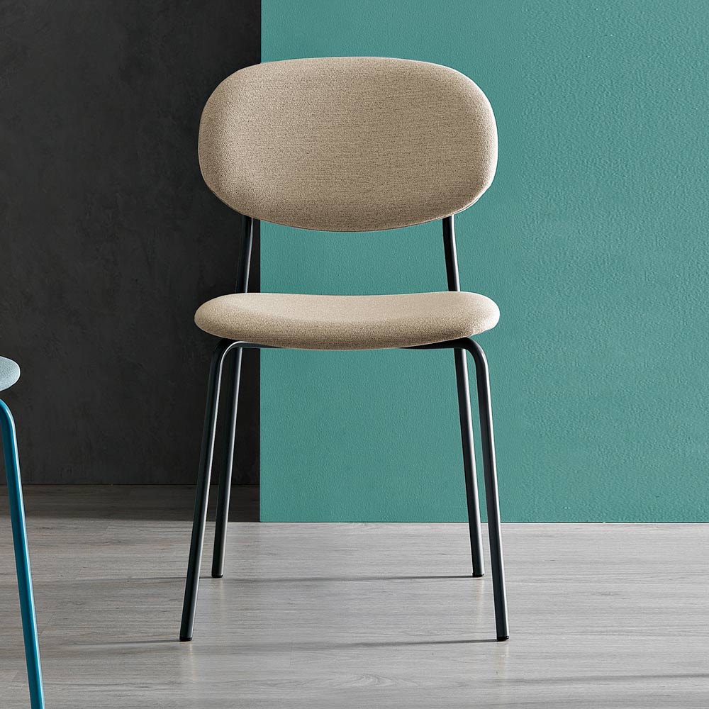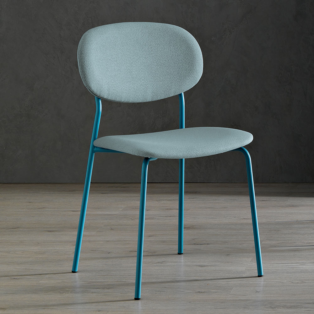 With its ergonomic silhouette, this chair is the embodiment of comfort. The sturdy yet elegant metal legs support the sinuous design of the seat, offering stability without compromising aesthetics. The contrast between the bold colors of the seats and the thin structures is a conscious choice that enhances the versatility of the design, adaptable to a myriad of interior environments.