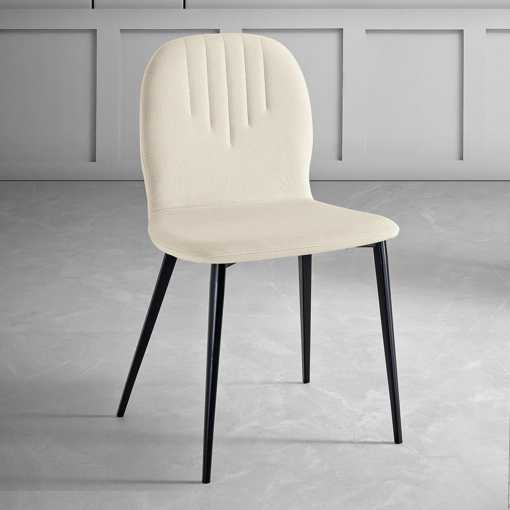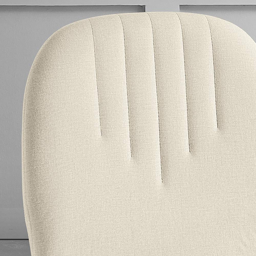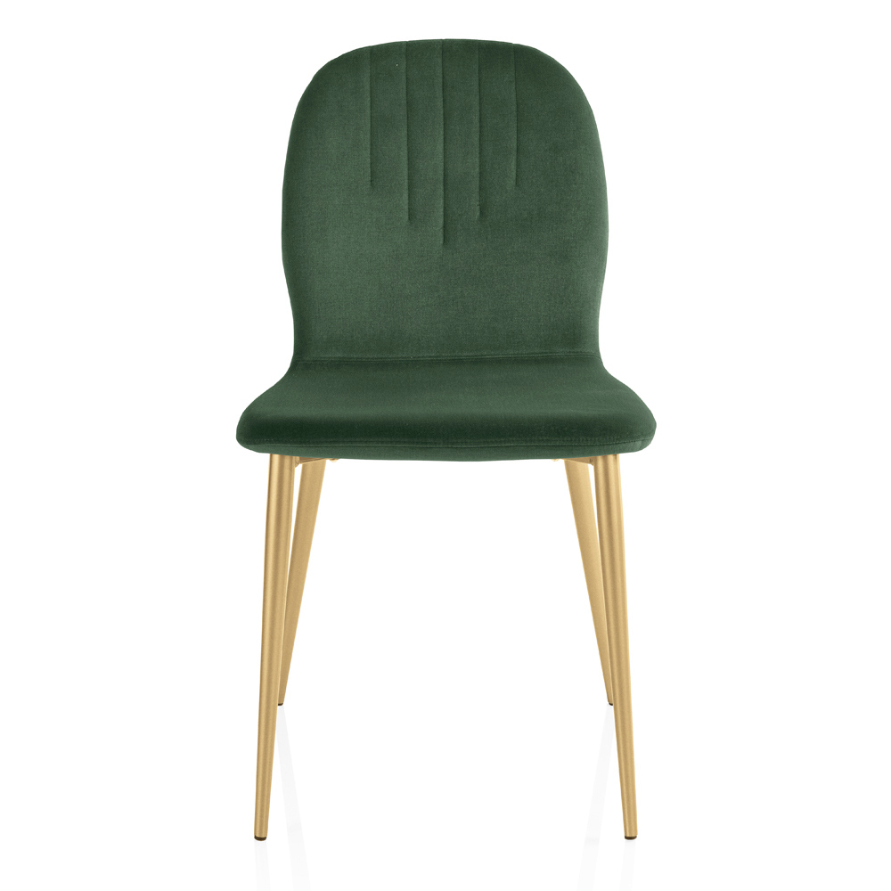 The quilted detail on the backrest is not only a feast for the eyes but also provides extra support, adding a dimension of comfort that is as functional as it is beautiful. The metal legs stand elegantly, giving the chair a solid base and a modern style that can blend effortlessly into any setting.