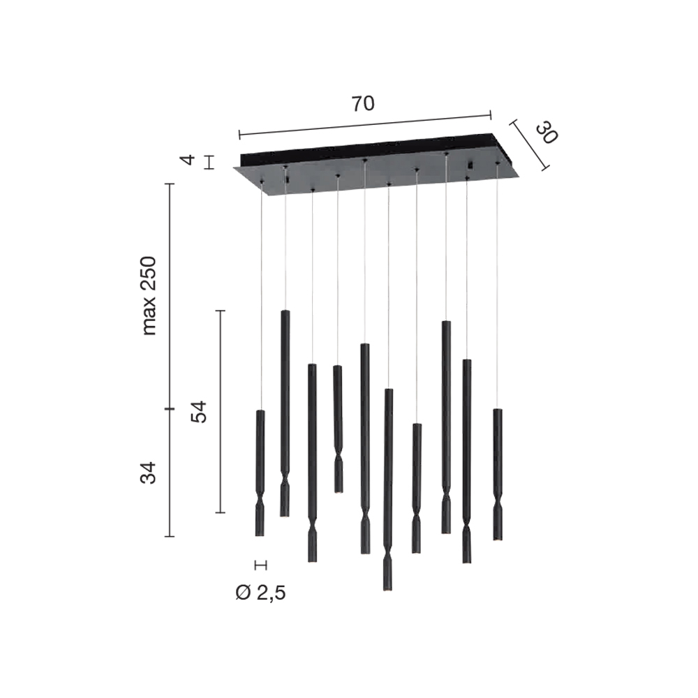 Chandelier with 10 LED Lights in Painted Metal and Adjustable Cables - Larch