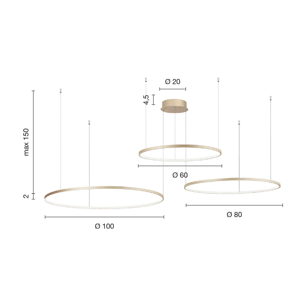 • 3 lights: diameter 100cm / diameter 80cm / diameter 60cm x height 2cm
