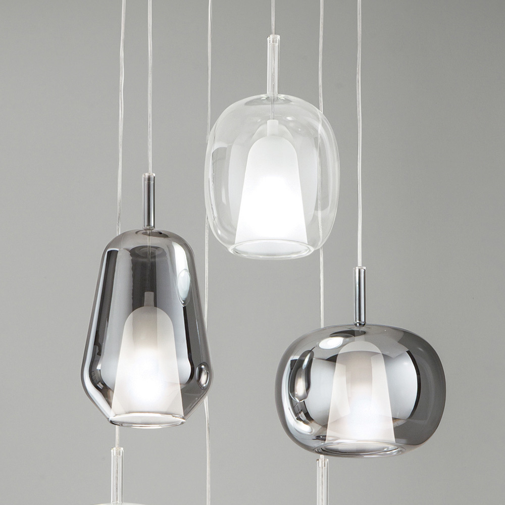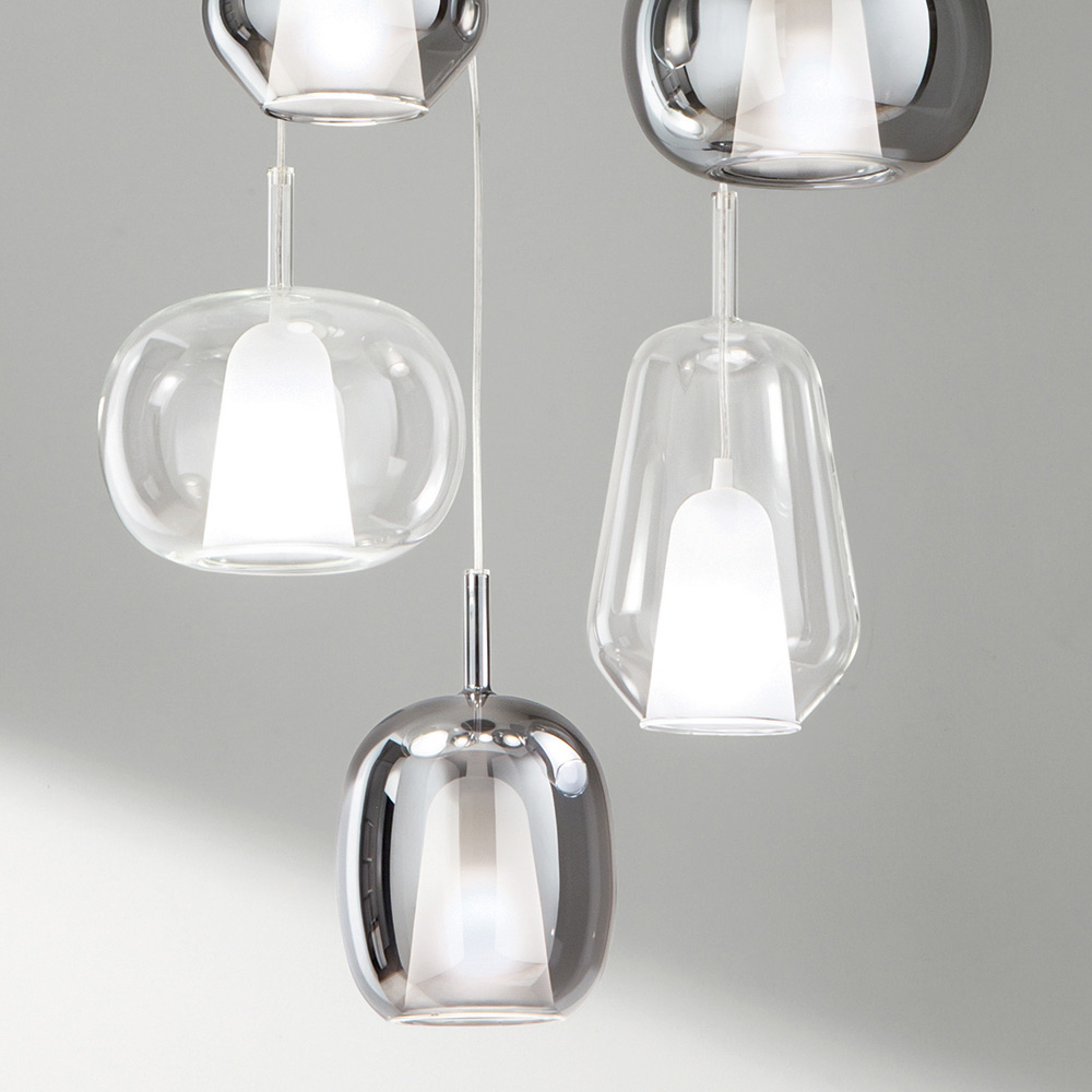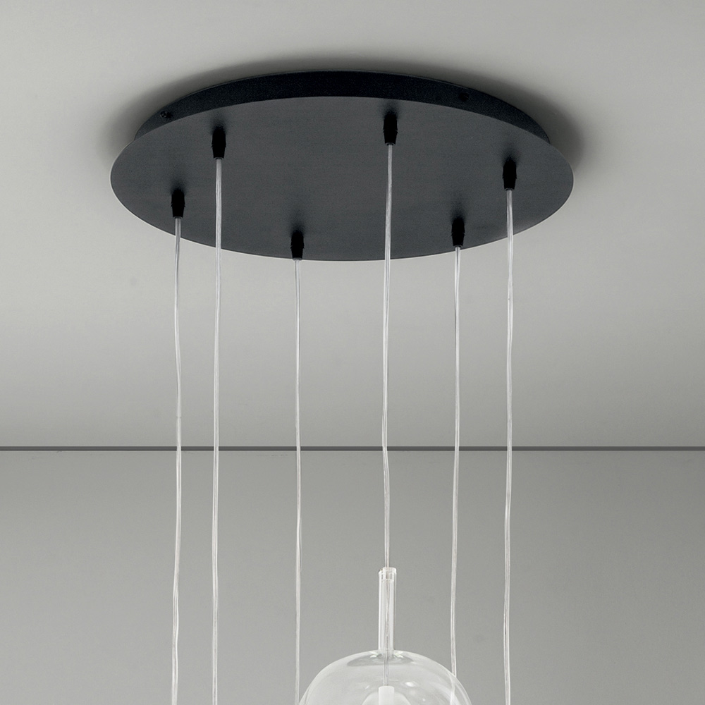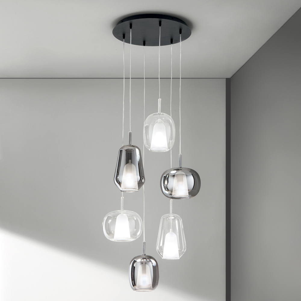 Chandelier with 6 Smoked and Transparent Glass Diffusers Made in Italy - Trilly