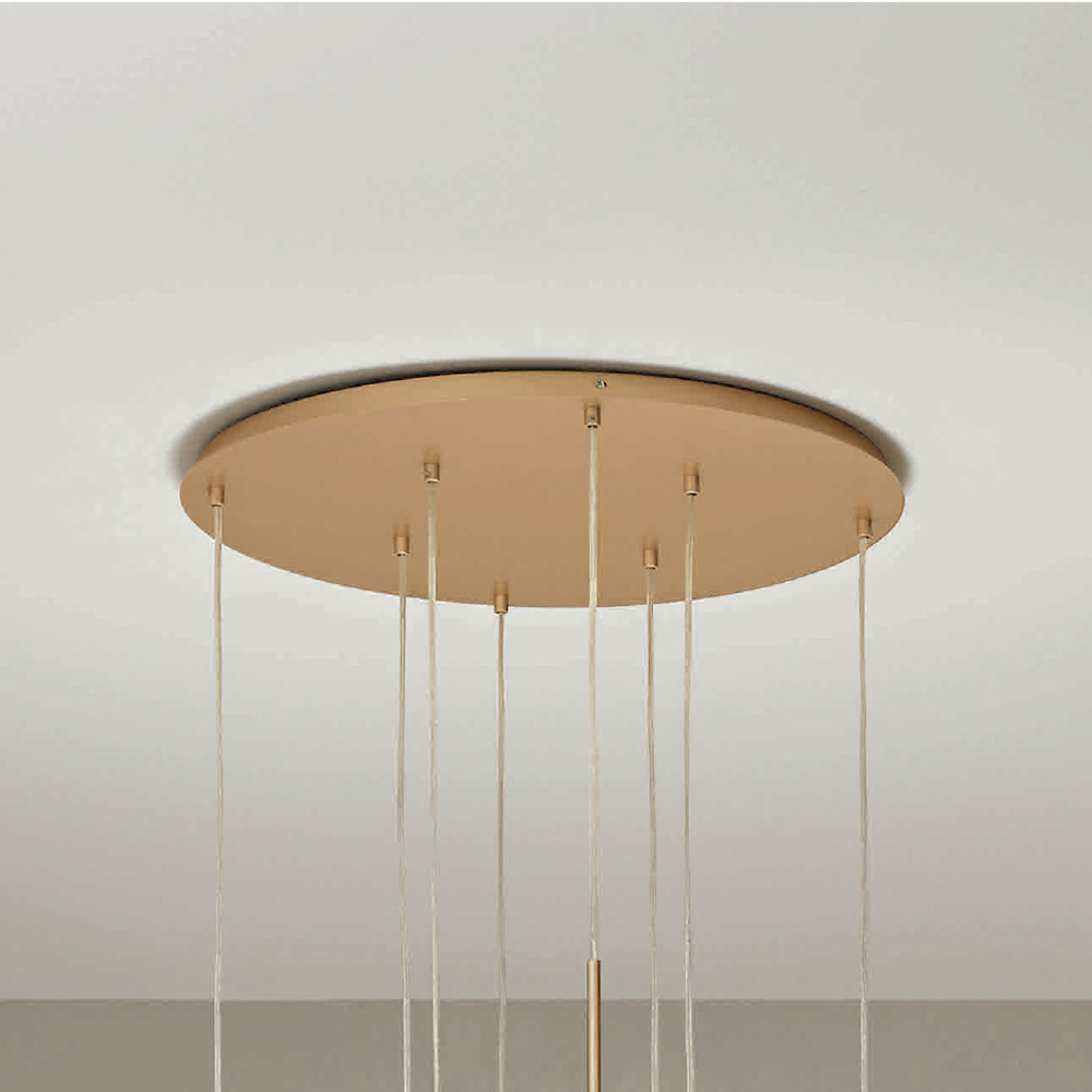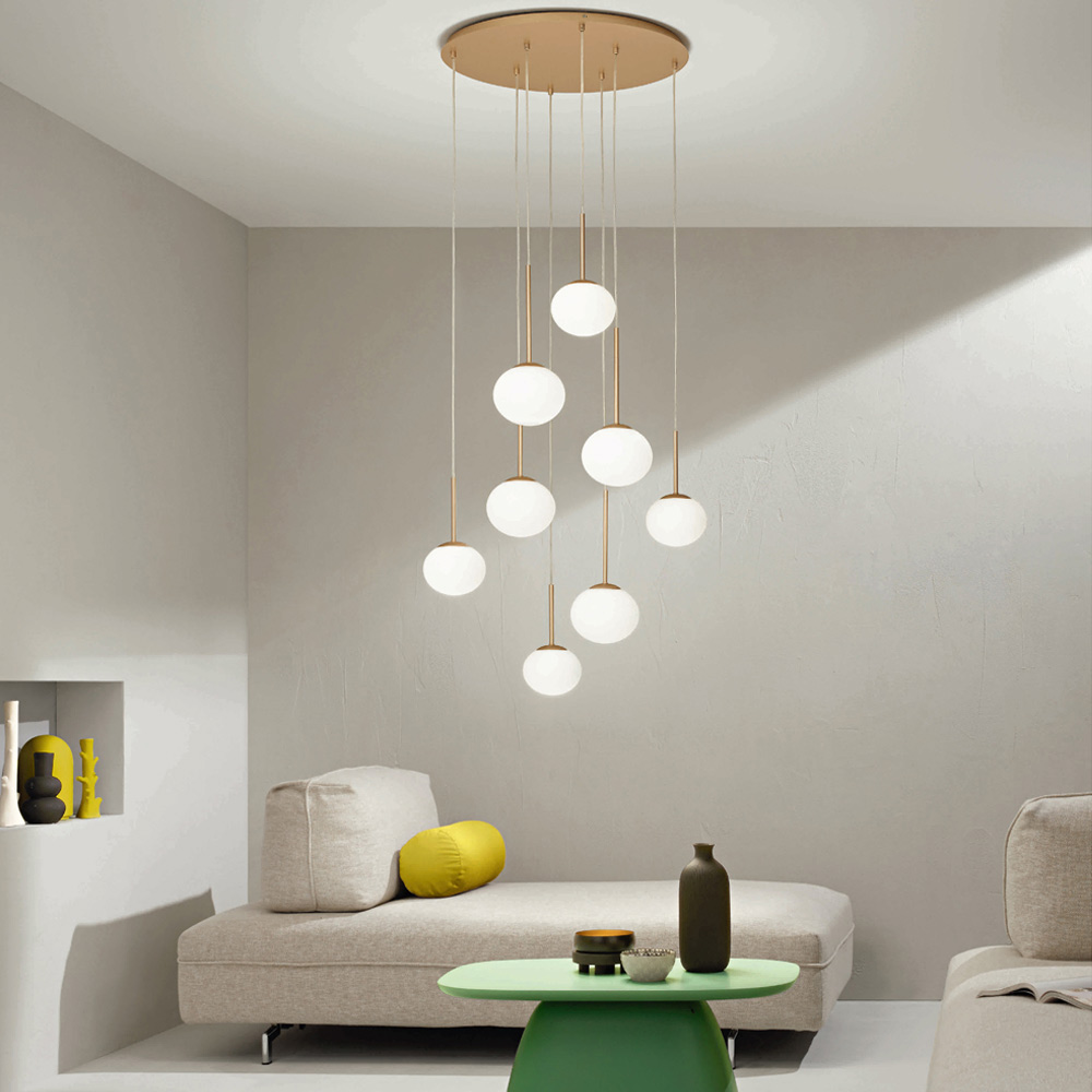 Chandelier with 8 LEDs in Gold Painted Metal and Blown Glass - Ailanto