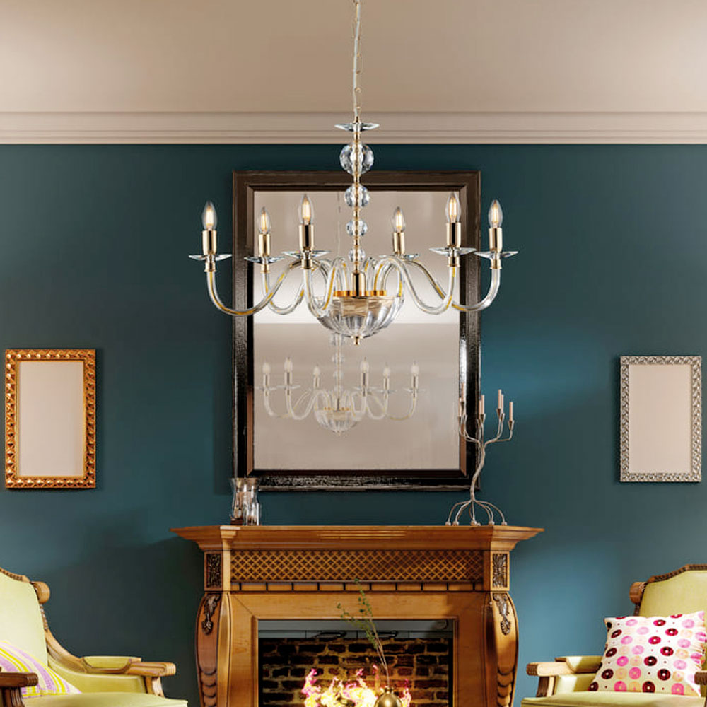 The sinuous candle-style arms lend lightness and refinement to the composition, making this chandelier ideal for elegant living rooms, dining rooms, grand entrances, classic lounges, and high-end contract settings . Every detail speaks to the quality of Made in Italy craftsmanship , where fine materials and aesthetic care blend into a timeless design.