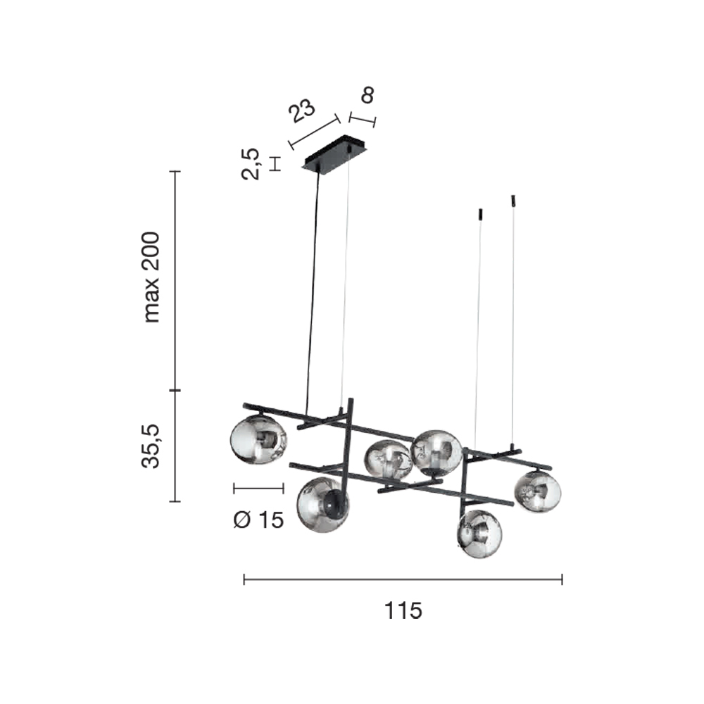 - base in the ceiling: length 8cm x depth 23cm x height 2.5cm