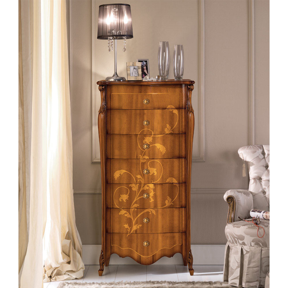 7-drawer chest of drawers in inlaid walnut wood Made in Italy.