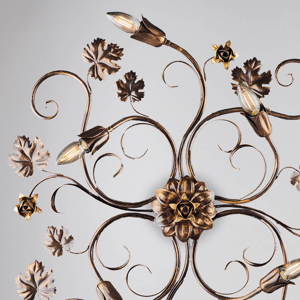 The selected materials, such as iron, create an elegant effect and a pleasant light output. Entirely made in Italy, this ceiling light guarantees reliability, sturdiness, and attention to every detail.