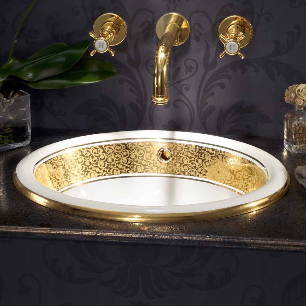 Circular built-in sink in fire clay and 24k gold made in Italy, Otis
